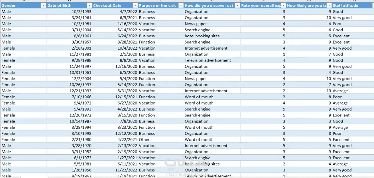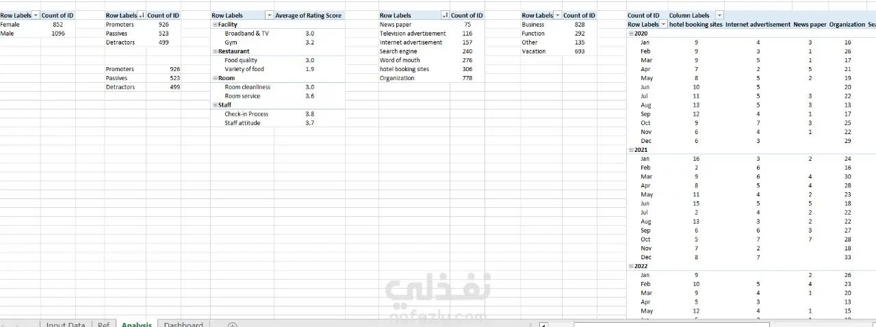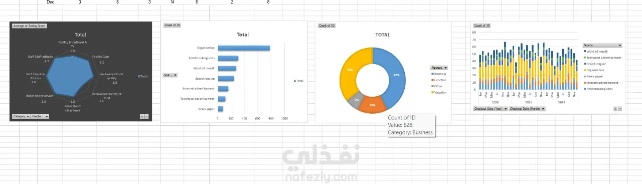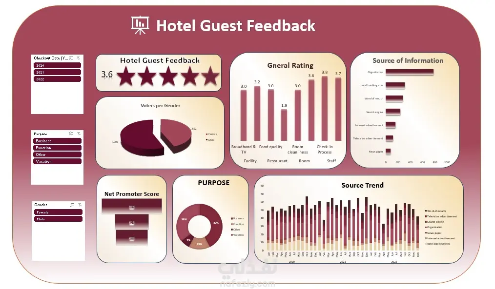 مشروع يهدف إلى تحليل ملاحظات وآراء نزلاء فندق خلال الأعوام 2020 إلى 2022، وتصميم Dashboard تفاعلي لعرض النتائج بشكل واضح وسهل الفهم.