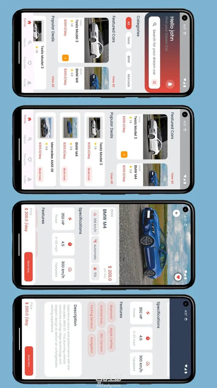 "CarRental App" هو تطبيق يتيح استئجار السيارات باستخدام Flutter