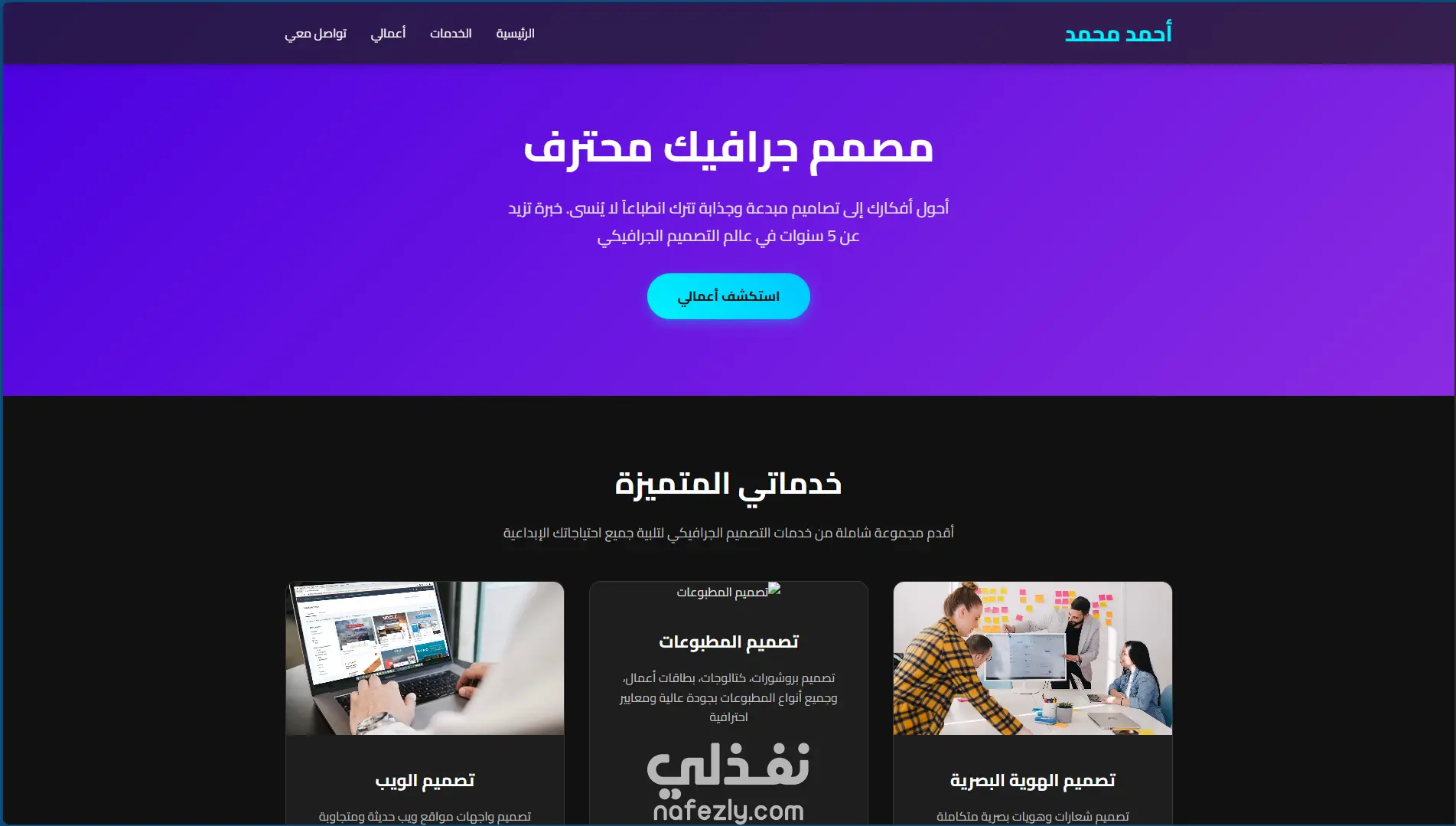 صفحة رئيسية جذابة تُبرز هوية المصمم ولمحاته الفنية 🎨