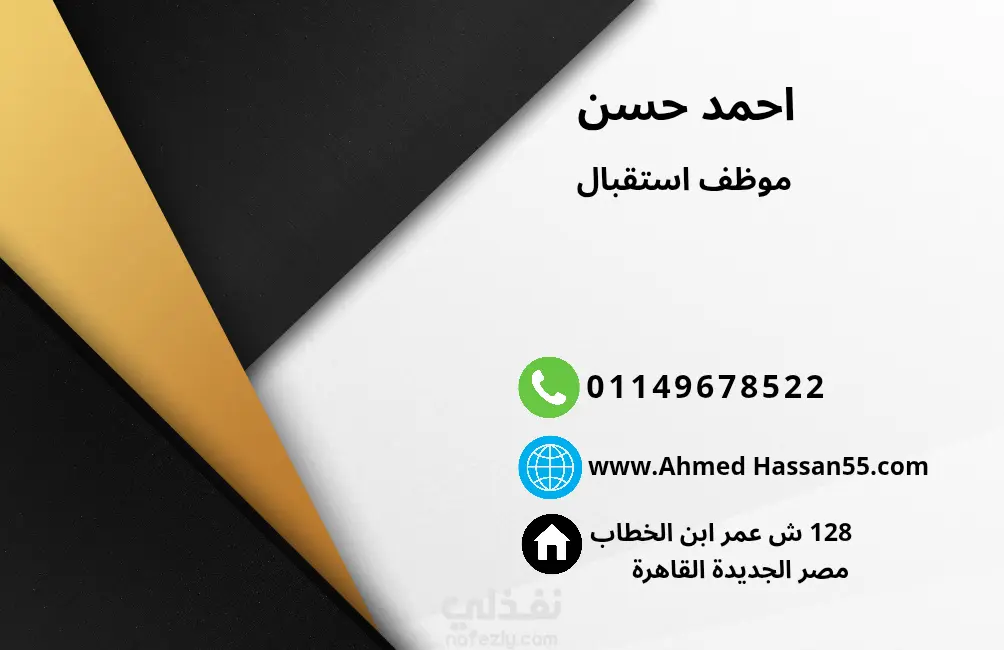 هل تحتاج إلى كارت عمل يعكس هوية مشروعك باحتراف وأناقة؟ سأقوم بتصميم كارت عمل (Business Card) مميز يعبر عن نشاطك التجاري أو الشخصي بطريقة جذابة واحترافية.