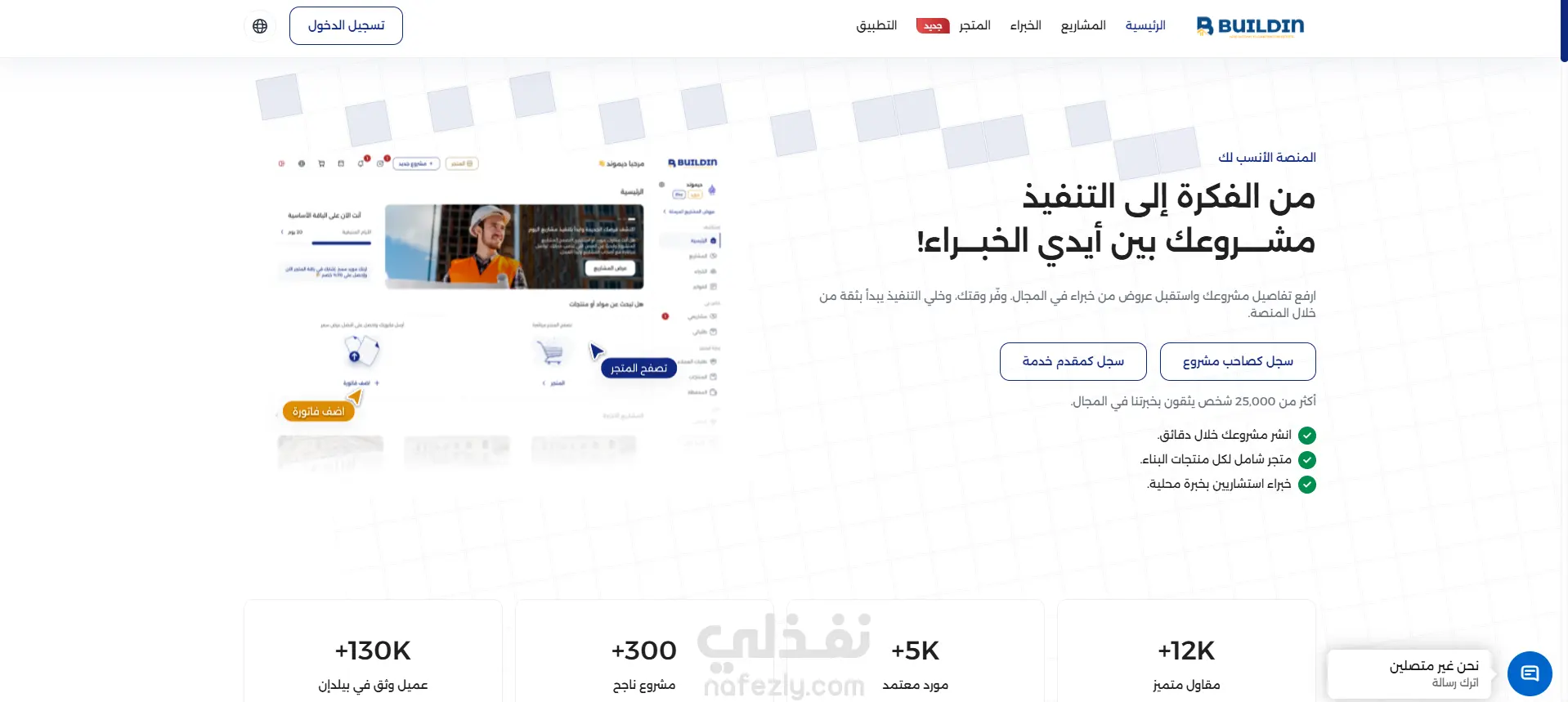 إن هي منصة رقمية متكاملة تربط بين أصحاب المشاريع، الخبراء في مجالات البناء والتشغيل، والموردين في قطاع مواد البناء والخدمات المتعلقة بها. يتيح التطبيق للمستخدمين نشر مشاريعهم، استلام عروض من الخبراء، وإدارة تنفيذ المشاريع، إضافة إلى متجر داخلي لشراء المواد والمستلزمات اللازمة بسهولة وموثوقية. الفئة المستهدفة أصحاب المشاريع (أفراد أو شركات إنشاءات) الذين يحتاجون إلى تنفيذ أعمال بناء، صيانة أو تجديد. مقدّمو خدمات البناء (مهندسين، مقاولي تشطيب، كهربائيين، سباكين، وغيرهم). الموردون الذين يبيعون مواد البناء، أدوات كهربائية، أدوات صحية، طلاء، وغيرها من المستلزمات. المزايا والخدمات الأساسية نشر مشاريع يوقّع صاحب المشروع فكرة المشروع، المواصفات، ميزانية، الموقع، وغيرها من التفاصيل. في دقائق يتم نشر المشروع على المنصة. يتلقى صاحب المشروع عروض أسعار متعددة من محترفين مؤهلين. اختيار العروض ومراقبة التنفيذ مقارنة بين العروض واختيار الأنسب. متابعة تنفيذ المشروع خطوة بخطوة من داخل التطبيق (مراحل العمل، الموافقات، التواصل). دفع آمن مع آلية تحرير المبلغ بعد تأكيد الإنجاز (مثلاً عبر رمز OTP عند التوصيل). متجر داخلي لمواد البناء والمستلزمات إمكانية تصفّح وشراء المنتجات المطلوبة (سباكة، أدوات كهربائية، أدوات صحية، طلاء، إلخ). استقبال الفواتير المرتبطة بالمشاريع وطلب المنتجات من متجر داخلي. إدارة الطلبات، المخزون، والتحصيل داخل المنصة. لمنصة مقدّمي الخدمة عرض ملف الخبرة، المشاريع السابقة، التخصصات. تصفّح المشاريع المتاحة وتقديم عروض للعمل. إدارة العروض، العقود، المدفوعات والطلبات من خلال التطبيق. للموردين فتح متجر على المنصة لعرض منتجاتهم أمام أصحاب المشاريع. استلام طلبات المنتجات والفواتير مباشرة. إدارة المخزون، التسعير، ومعاملات الدفع. ضمان الجودة والثقة مراجعة ملفات الخبراء والمنتسبين قبل القبول في المنصة لضمان المصداقية. تقييمات ومراجعات من المستخدمين بعد تنفيذ المشاريع. دعم فني متاح على مدار الساعة. ميزات إضافية باقات اشتراك مرنة تناسب احتياجات المستخدمين المختلفين (نشر مشروع، متجر، عرض خدمة، الخ). واجهة استخدام بسيطة وسريعة لتسهيل التعامل حتى لمن ليس لديهم خبرة كبيرة بالتطبيقات الرقمية. محفظة إلكترونية لإدارة الأرباح والتحويلات. القيمة المضافة / المقترح الفريد (Unique Selling Proposition) كل ما يحتاجه صاحب المشروع من فكرة إلى تنفيذ، ومشتريات كل المواد، يكون متوفراً في منصة واحدة. تقليص الوقت والجهد في البحث عن الخبراء والموردين، وتقليل المخاطر بفضل التقييم والمراجعة. تقديم فرص لكافة الجهات (مقاول، مورد، صاحب مشروع) في بيئة مهنية وآمنة. نموذج الإيرادات عمولة على المشاريع المنفذة أو على العروض المقبولة. اشتراكات من الموردين أو مقدّمي الخدمات لفتح متاجر أو تقديم مزايا إضافية. رسوم إضافية على المعاملات أو الدفع الآمن. خدمات مميزة (ترقية العرض، ظهور مميز، الترويج داخل المنصة
