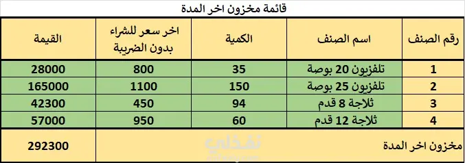 استخراج مخزون اخر المده لإعداد قائمه الدخل