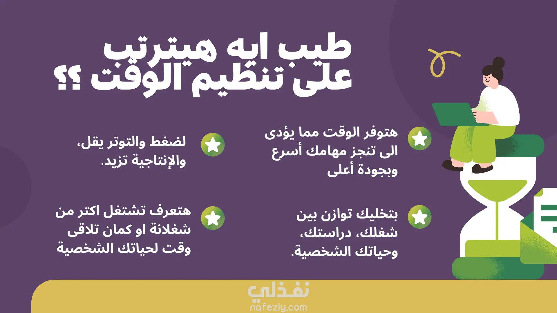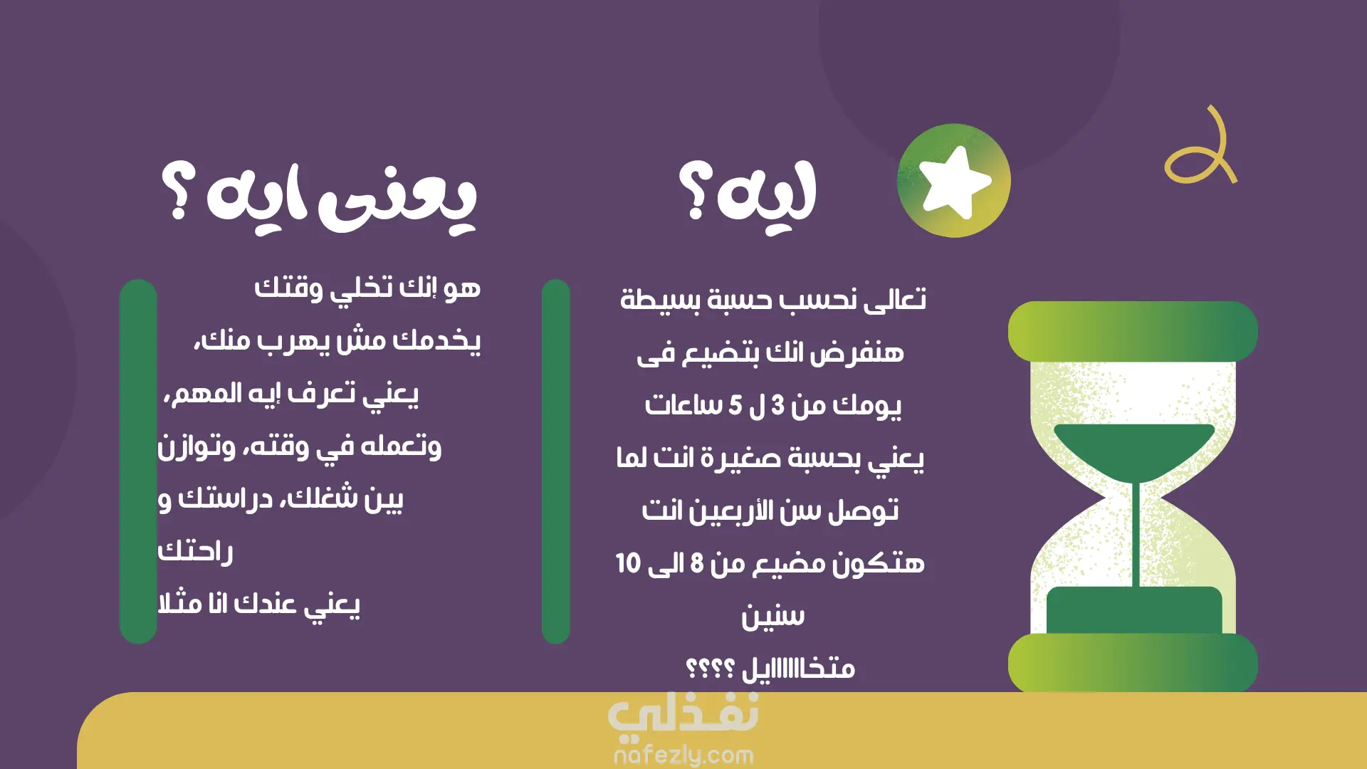 تصميم عرض تقديمى من 5 صفح عن تنظيم الوقت