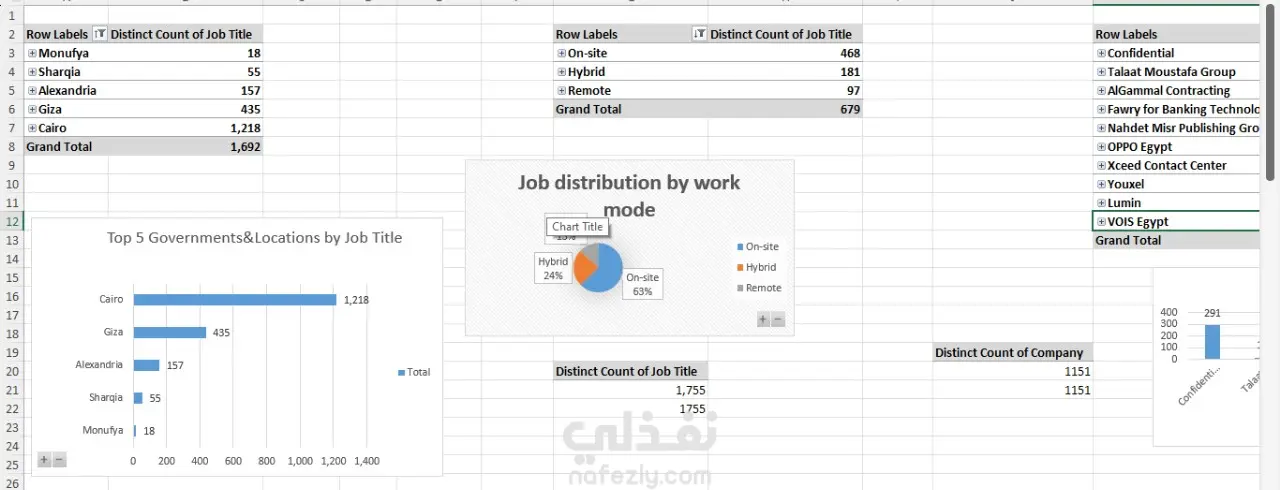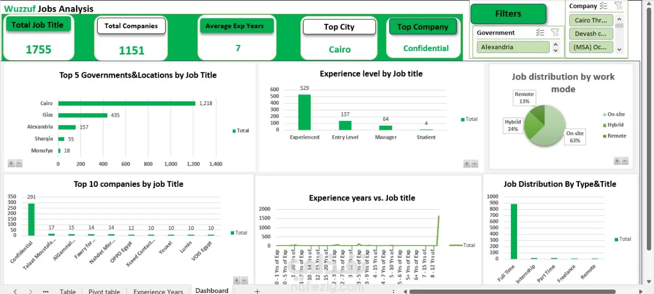 🔹 نبذة عن المشروع: حللت بيانات وظائف من موقع Wuzzuf من حوالي ٨ شهور. ورغم إن البيانات مش حديثة جدًا، إلا إنها بتوضح بشكل قوي قد إيه سوق العمل في مصر بيتغير بسرعة، وفي نفس الوقت بتظهر اتجاهات مستقرة ممكن نعتمد عليها. 🔹 أهم النتائج: القاهرة والإسكندرية هما المراكز الأساسية للوظائف في مصر. أغلب الوظائف المطلوبة بتحتاج خبرة من ١–٥ سنوات، وده بيعكس إن الشركات بتدور على خبرة عملية فعلية. الشغل On-site لسه الأكثر انتشارًا، لكن فيه نمو ملحوظ في Remote و Hybrid. حددت أكتر الشركات النشطة في التوظيف وأبرز أنواع الوظائف (Full-time / Freelance). الخلاصة: حتى لو البيانات من ٨ شهور، فهي بتقدم صورة دقيقة عن ديناميكيات سوق العمل المصري، وبتأكد إن تحليل البيانات بشكل دوري ضروري علشان نفهم التغيرات ونساعد في اتخاذ قرارات أفضل.