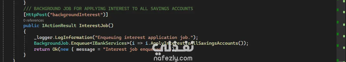نظام إدارة مصرفي مبرمج باستخدام ASP.NET Core Web API يتيح للمستخدمين إنشاء حسابات بنكية، تنفيذ المعاملات المالية، وإدارة الحسابات بشكل آمن وسلس اهم الخصائص و النقاط: - تسجيل المستخدمين وتسجيل الدخول باستخدام JWT Authentication - إنشاء حسابات وإدارة الأرصدة - عمليات السحب والإيداع وتحويل الأموال - سجل العمليات المالية Transaction History - قواعد بيانات SQL Server مع Entity Framework Core - تطبيق أنماط معمارية مثل Repository Pattern وDTOs - توثيق شامل عبر Swagger UI -Background jobs باستخدام Hangfire