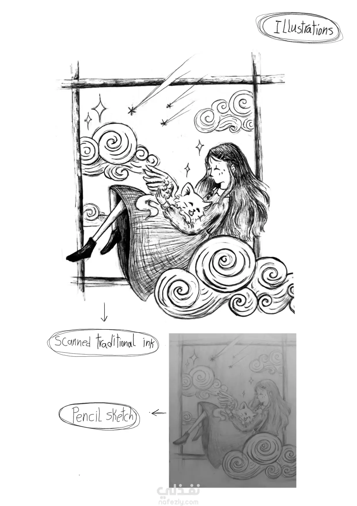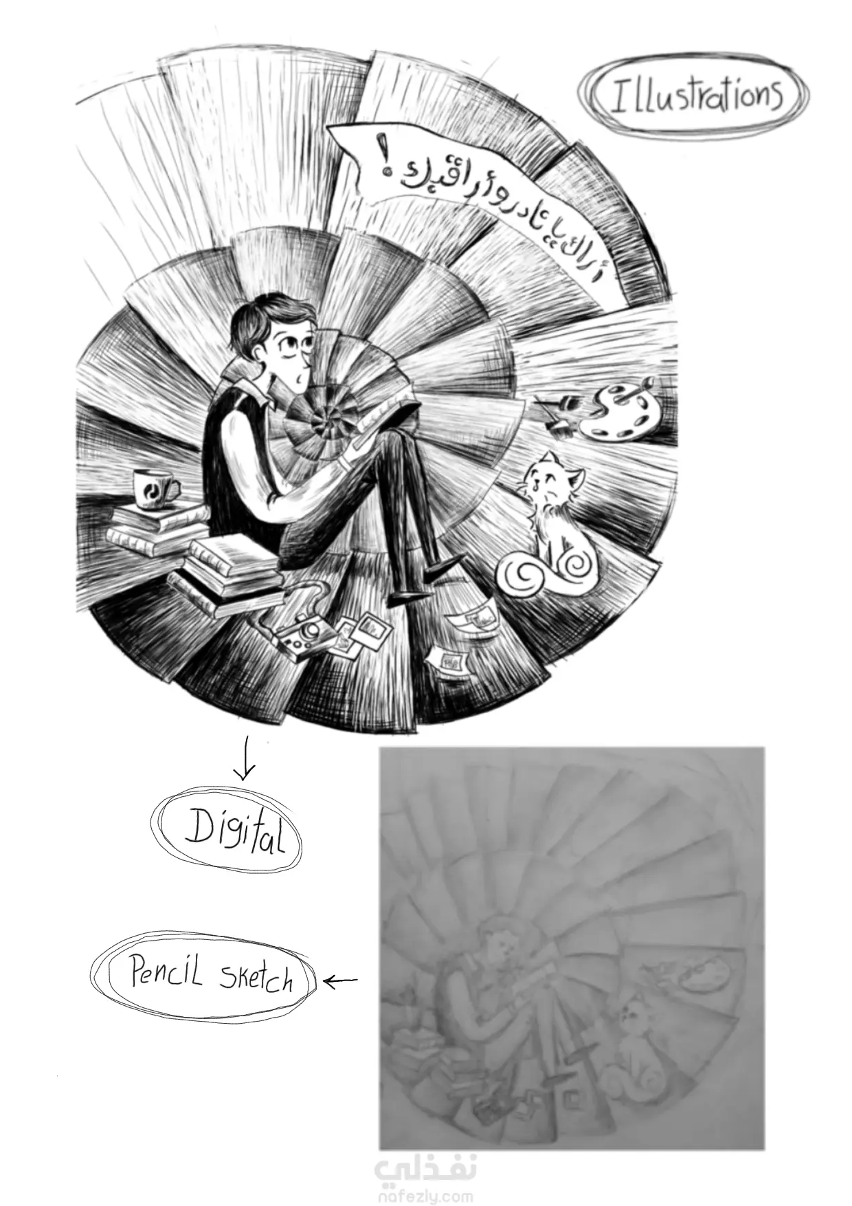 رسوم مميزة بتعبر عن قصة من خلال الخطوط و الظلال بالابيض و الاسود