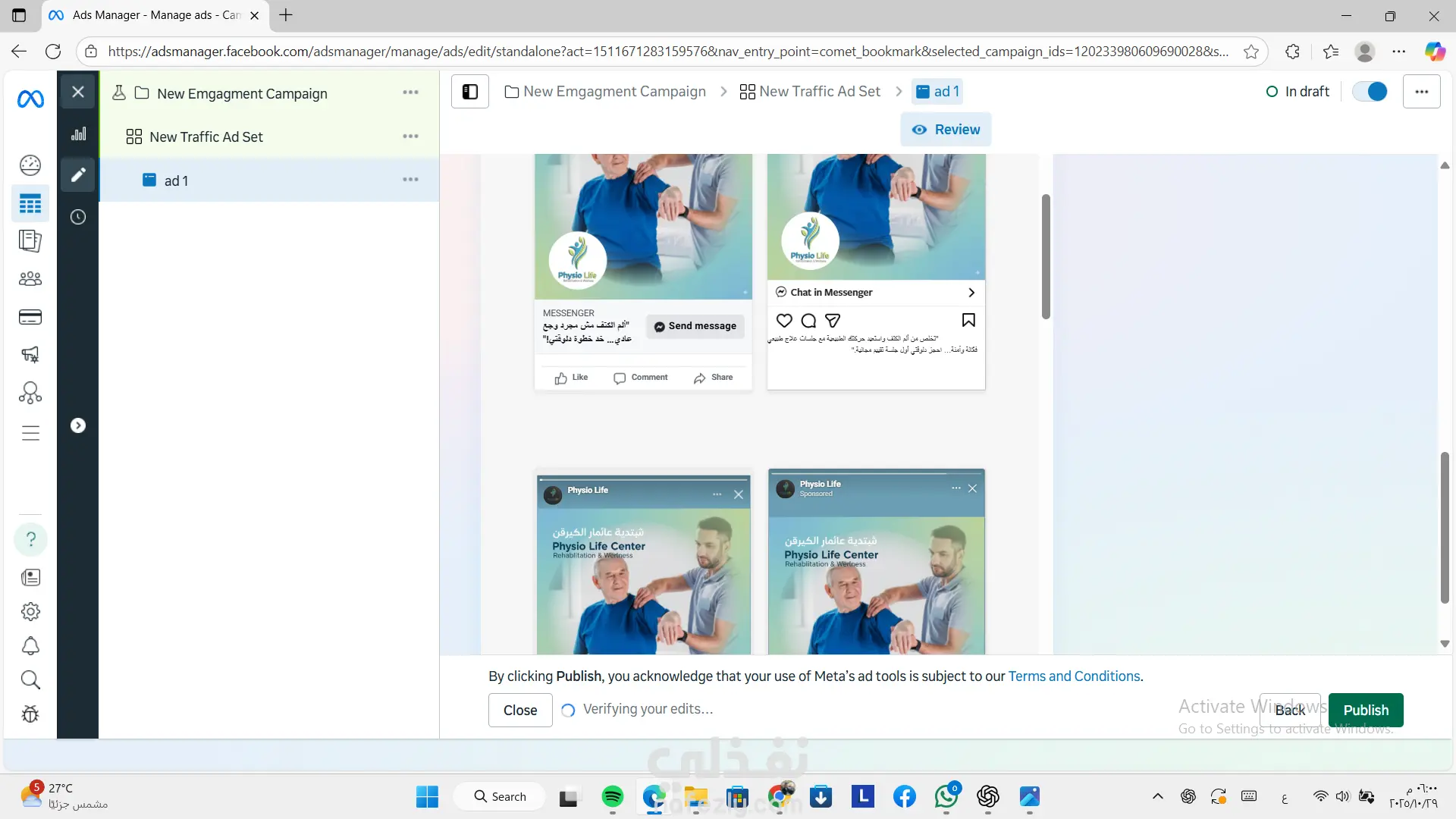 حملة اعلانية علي فيسبوك لمركز علاج طبيعي - هدفها زيادة التفاعل والزيارات