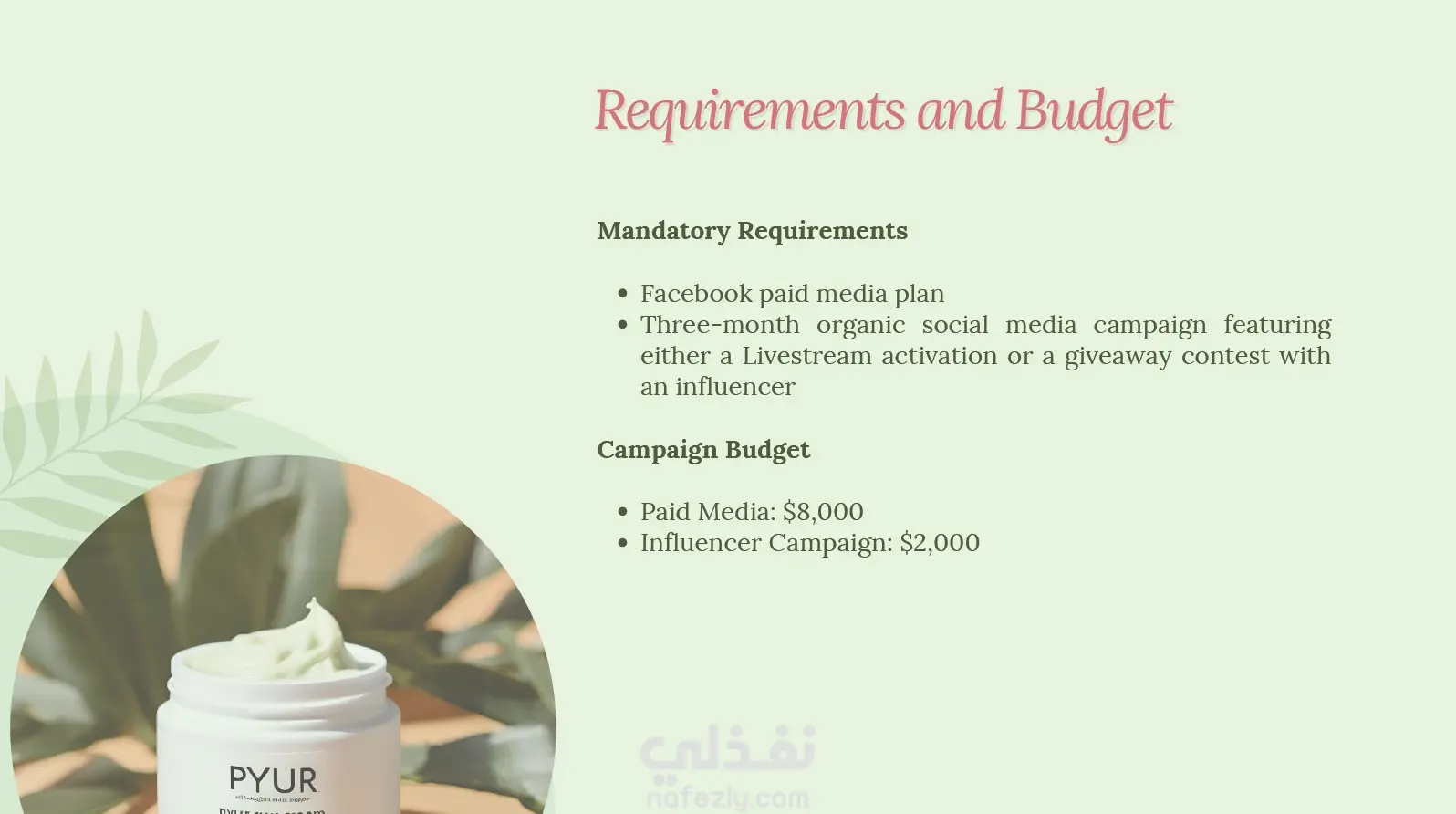 - تطوير خطة حملات مدفوعة وعضوية (Paid & Organic Campaigns) تشمل بث مباشر ومسابقات وهدايا ترويجية.
