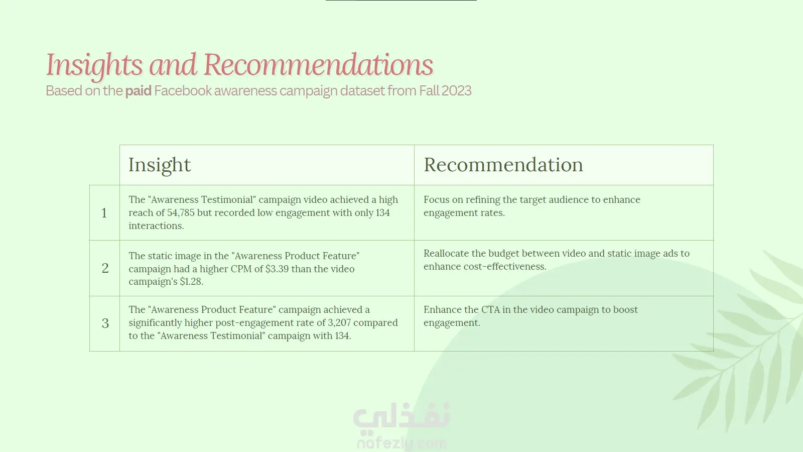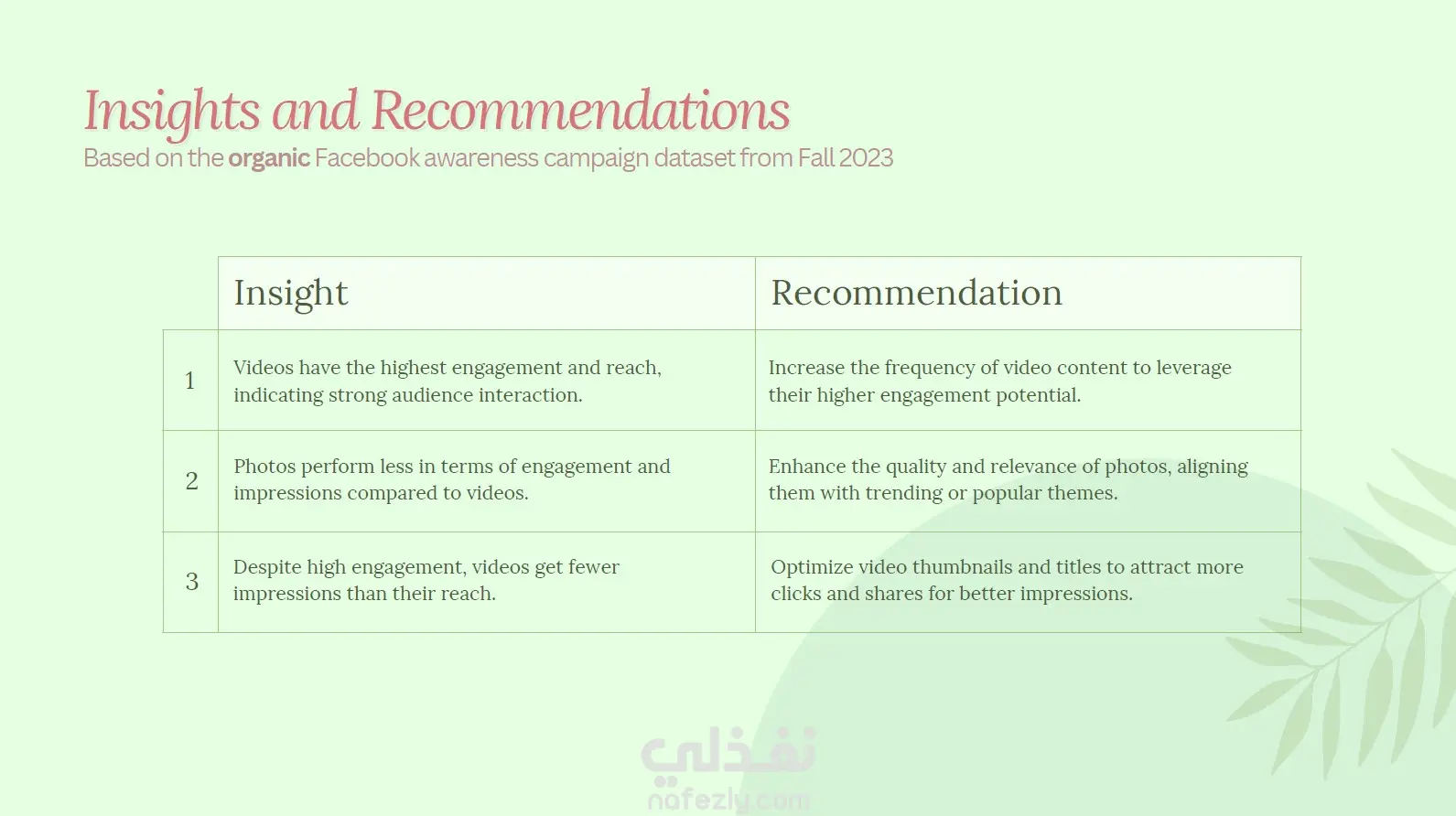 - تحليل المنصات الأنسب (Facebook، Instagram، Pinterest) وتحديد أساليب زيادة التفاعل.