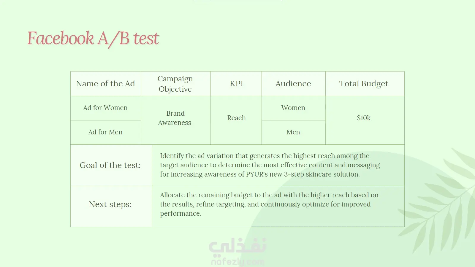 - تصميم اختبار إعلاني (A/B Test) لقياس أداء الإعلانات بين الرجال والنساء.