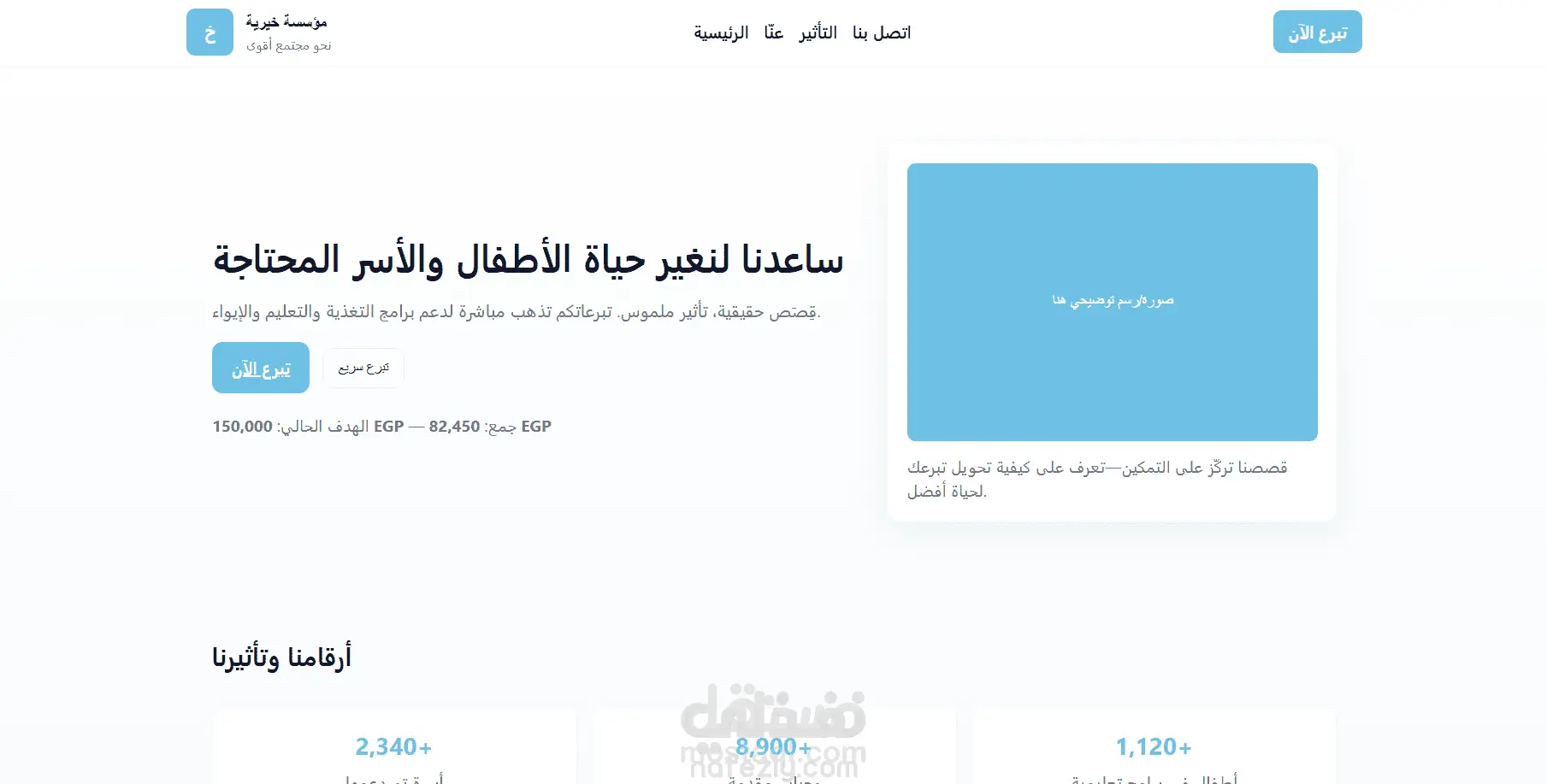 Charity Landing Page – موقع تبرعات خيري بتصميم بسيط ومتجاوب