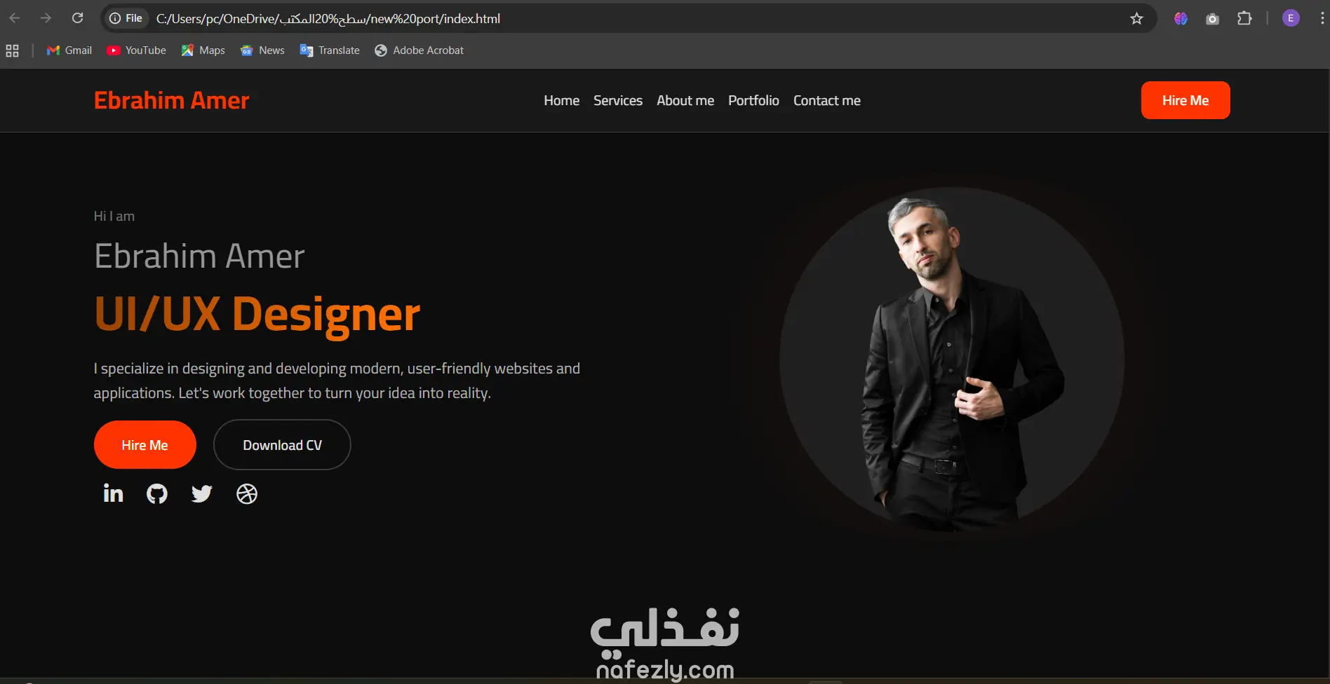 أقدّم لك موقع Portfolio احترافي ومتكامل مبني بالكامل بـ HTML5 / CSS3 / JavaScript/Bootstrap — مثالي لعرض أعمالك بخطوات بسيطة.