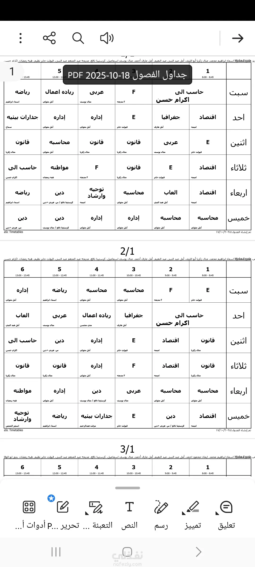 جداول تناسب جميع المدارس بمختلف مراحلها وتفاصيلها