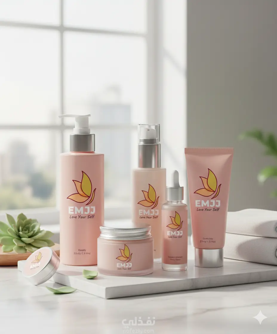 المشروع: تصميم هوية بصرية كاملة لعلامة تجارية ناشئة في مجال العناية بالبشرة (Skincare) تحت اسم "EMJJ"، والتي ترفع شعار "Love Your Self".