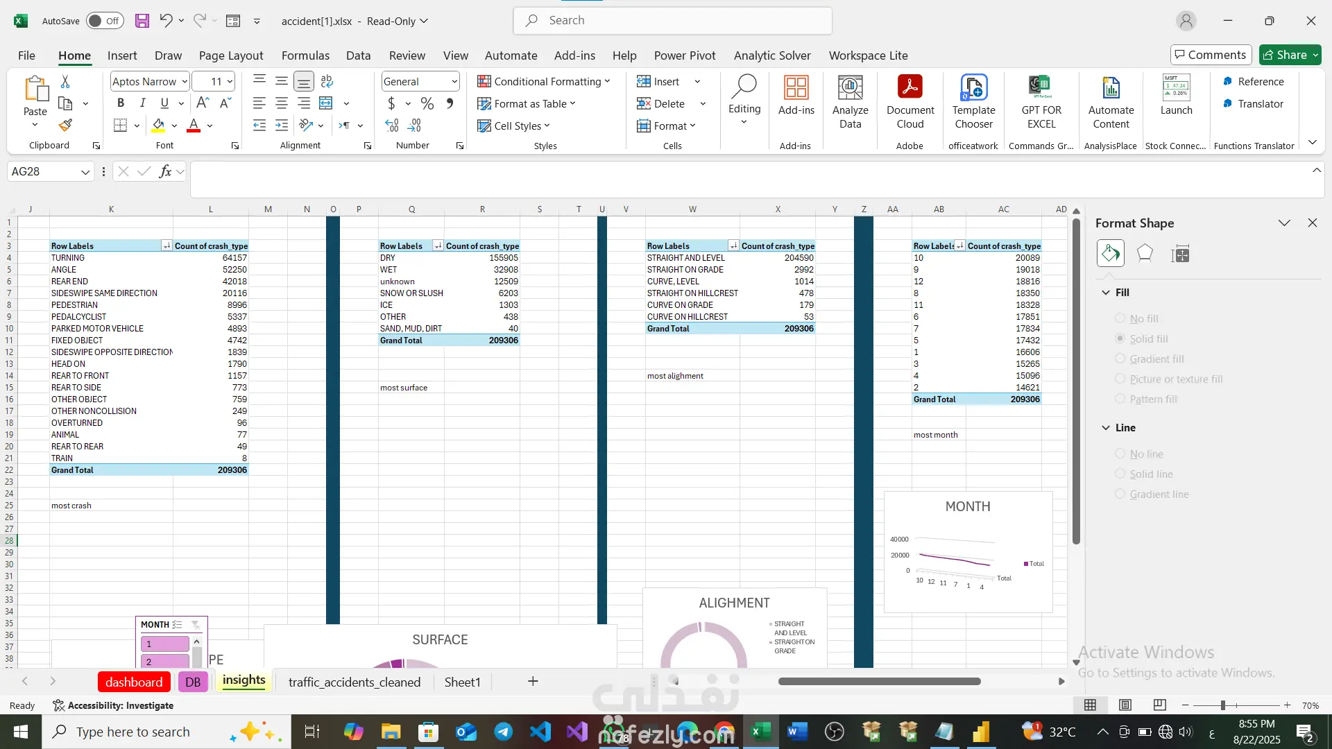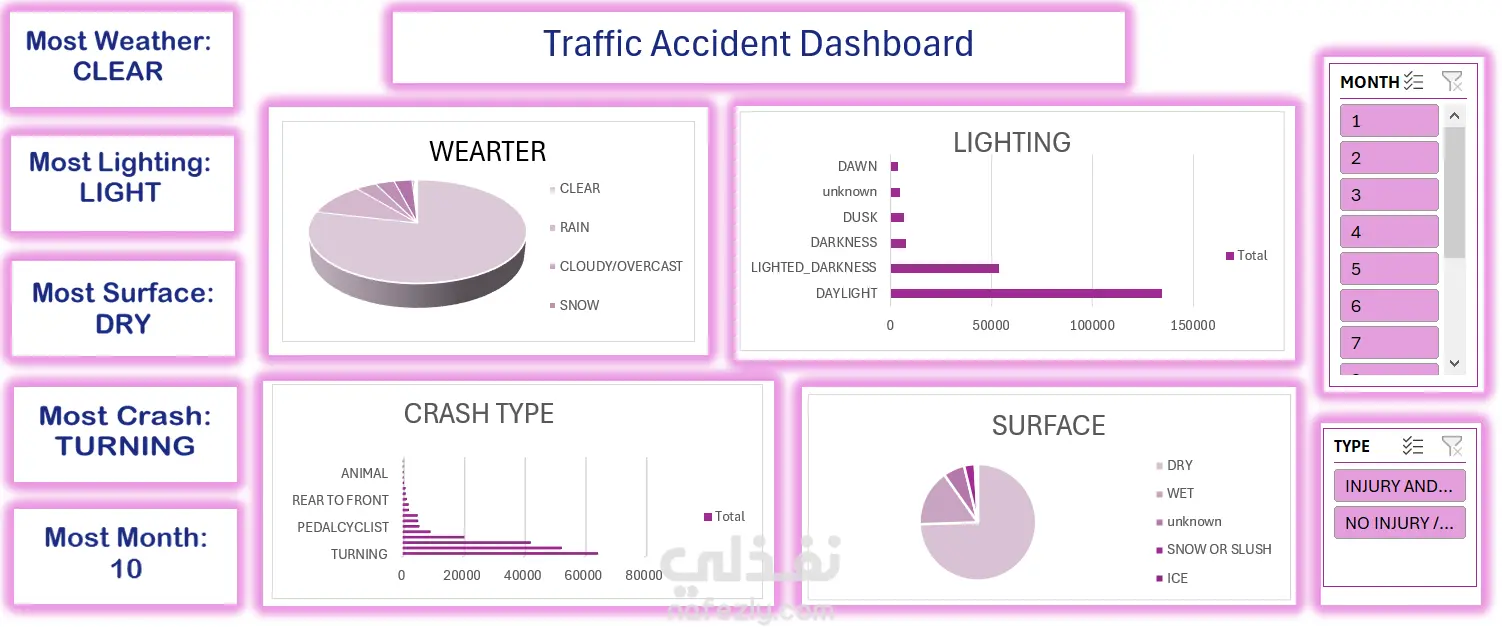 تصميم داش بورد لإحصائيات حوادث الطرق باستخدام إكسل