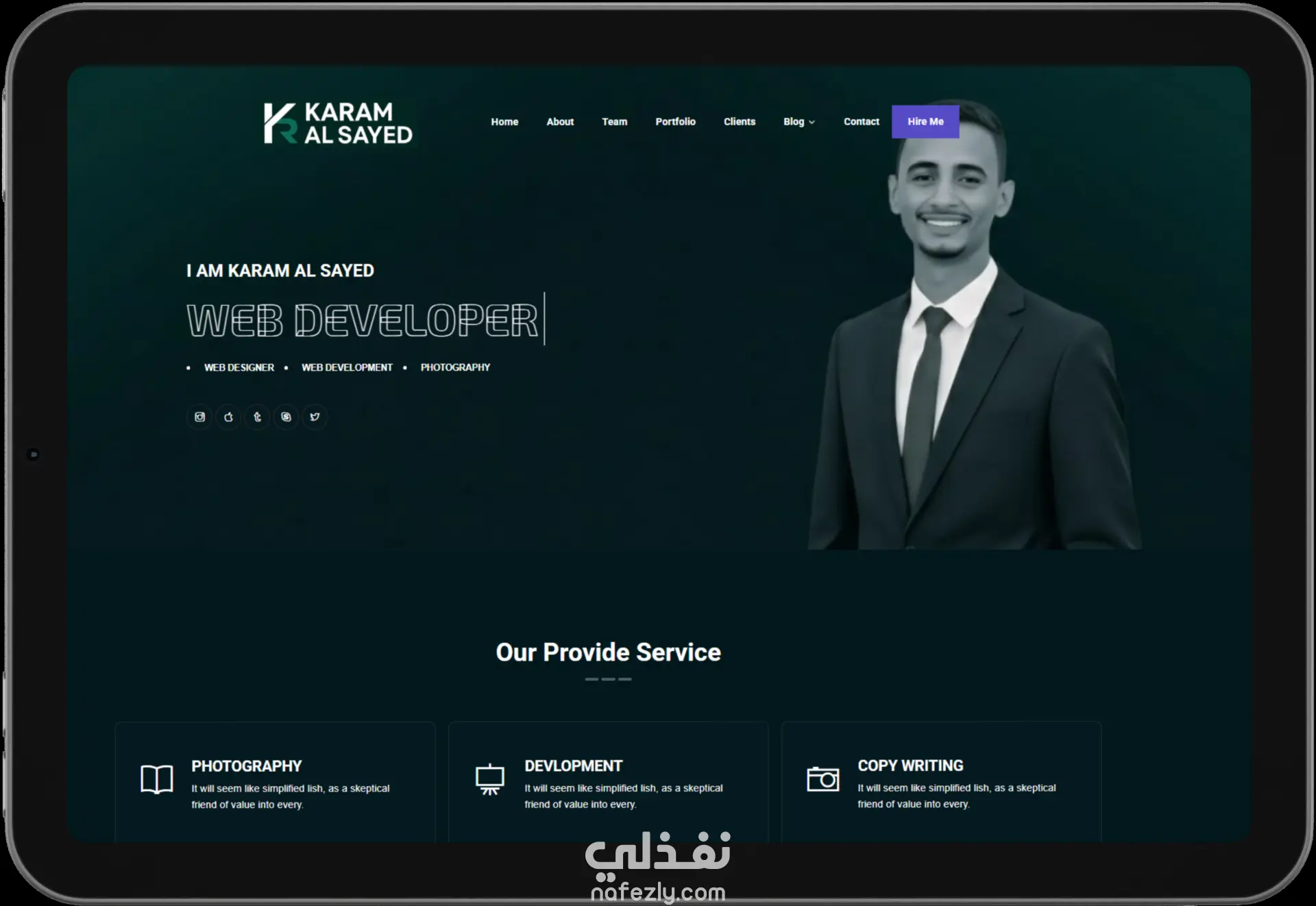 تم تصميم وتطوير موقع شخصي احترافي يعرض السيرة الذاتية والخدمات الخاصة بمطور الويب Karam Al Sayed، باستخدام WordPress و Elementor بتصميم عصري متجاوب مع جميع الأجهزة (كمبيوتر – تابلت – موبايل). تفاصيل العمل الفني: المنصة: WordPress أداة التصميم: Elementor Pro اللغات المستخدمة: HTML – CSS – JavaScript (ضمن المنتور) القالب: قالب احترافي معدل ليتناسب مع الهوية الشخصية الألوان: أخضر داكن × رمادي فاتح – مع لمسة بنفسجية للأزرار لتمييز الدعوات للتفاعل الخطوط: خطوط Google حديثة لسهولة القراءة المميزات الأساسية للموقع: واجهة رئيسية جذّابة تعرض الاسم والمسمى الوظيفي بشكل تفاعلي قسم “الخدمات” بشكل منظم وأيقونات أنيقة قسم “الأعمال السابقة / Portfolio” بعرض شبكي متجاوب صفحة “تواصل معي” تحتوي على نموذج تفاعل مباشر متجاوب بالكامل مع الجوال والأجهزة اللوحية تحسين الأداء والسرعة وتجربة المستخدم النتيجة النهائية: موقع شخصي بسيط وسريع، يعكس هوية المطور ويُبرز مهاراته بشكل احترافي، مما يجعله مناسبًا لعرض السيرة الذاتية أو التقديم على المشاريع والعمل الحر. Modern Personal Portfolio Website – Karam Al Sayed Project Overview: A fully responsive and modern personal portfolio website designed for Karam Al Sayed, a professional Web Developer. The website showcases personal branding, services, and contact information in a clean and elegant layout optimized for all devices. Technical Details: Platform: WordPress Page Builder: Elementor Pro Languages Used: HTML, CSS, JavaScript (within Elementor widgets) Theme: Customized modern theme Color Palette: Dark green with soft grey and accent purple for CTA buttons Fonts: Modern Google Fonts for clarity and style Key Features: Responsive design for desktop, tablet, and mobile Animated hero section highlighting name & profession Service section with clean icon-based layout Portfolio showcase grid Contact form integrated for direct communication Fast loading speed and SEO-friendly structure Result: A sleek, professional, and lightweight website that reflects the developer’s skills and brand identity — perfect for freelancers and digital professionals who want to make a strong first impression online.