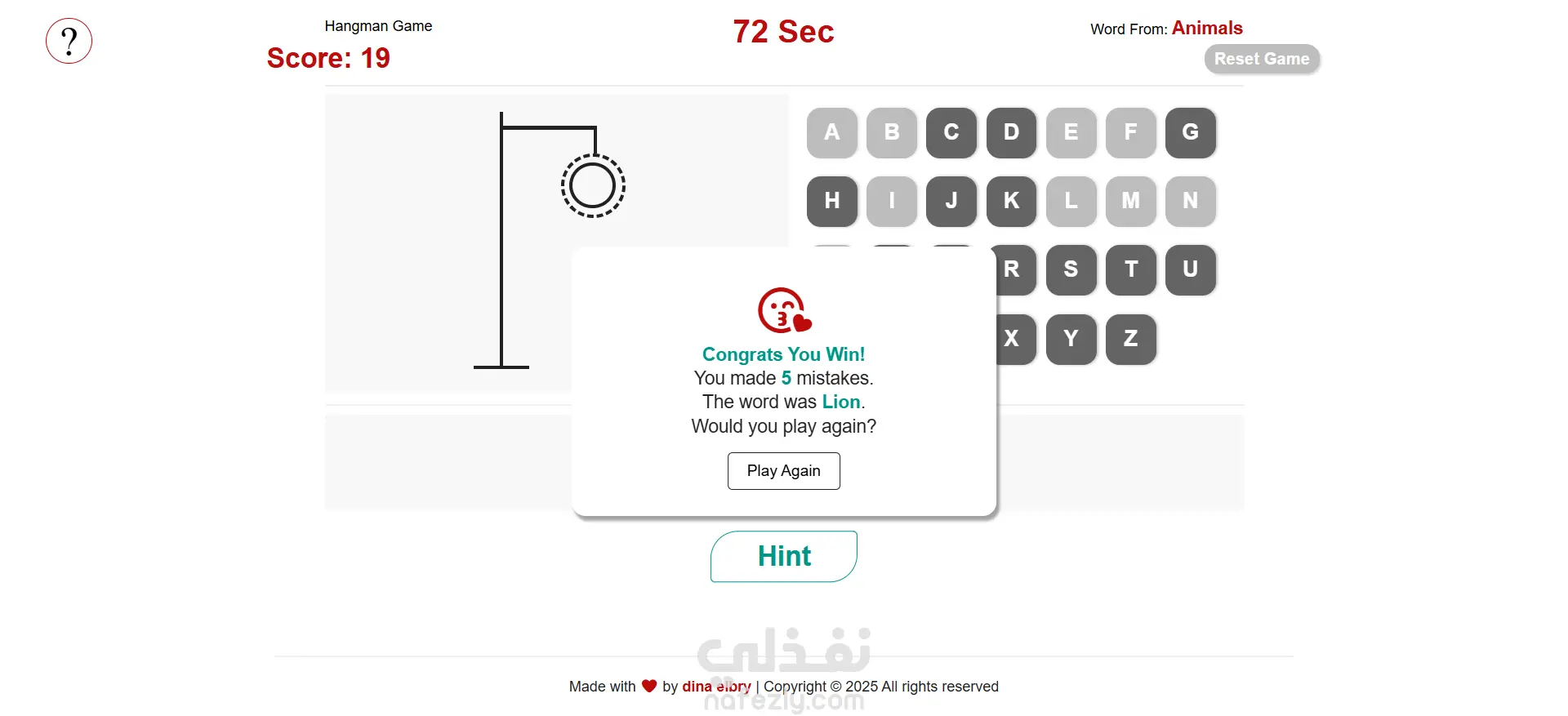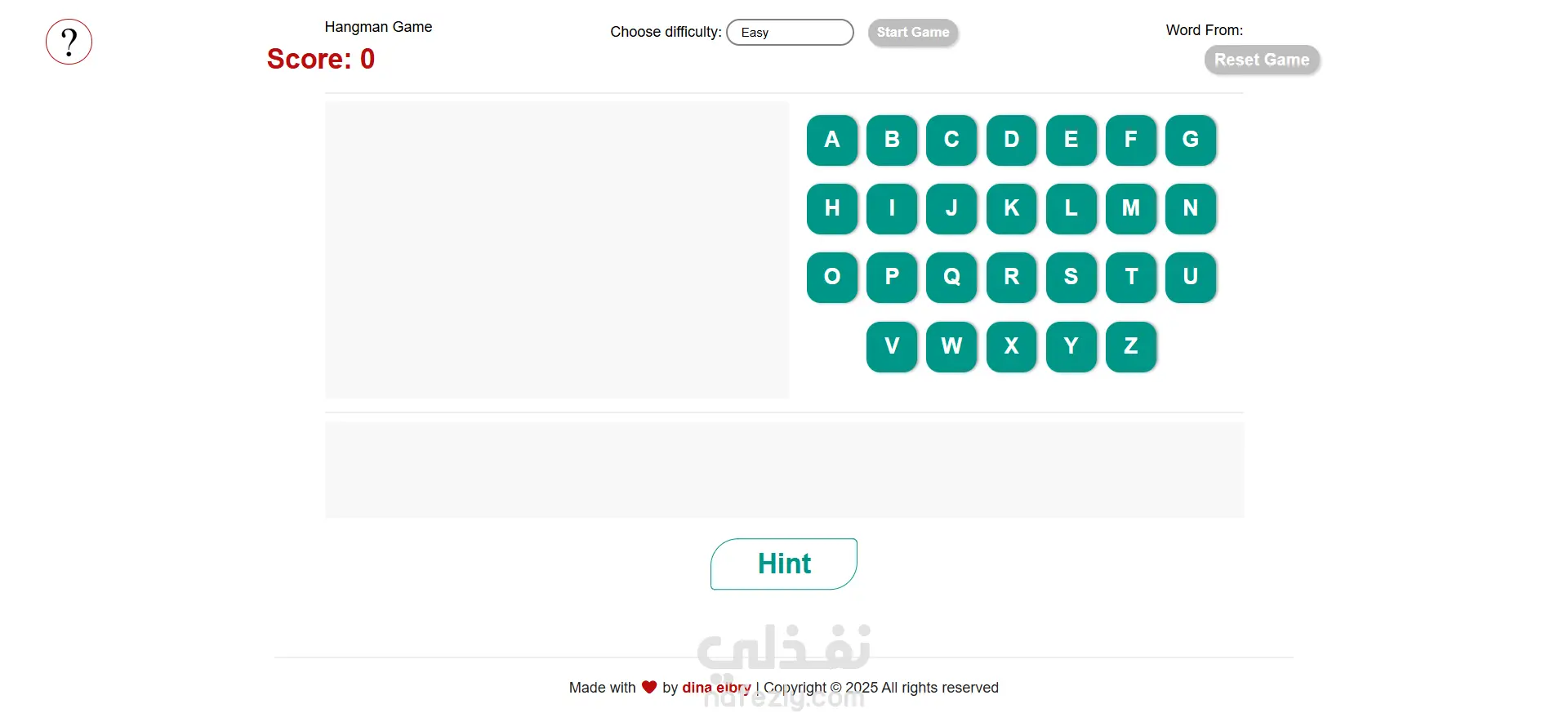 لعبة Hangman تفاعلية بـ HTML وCSS وJavaScript