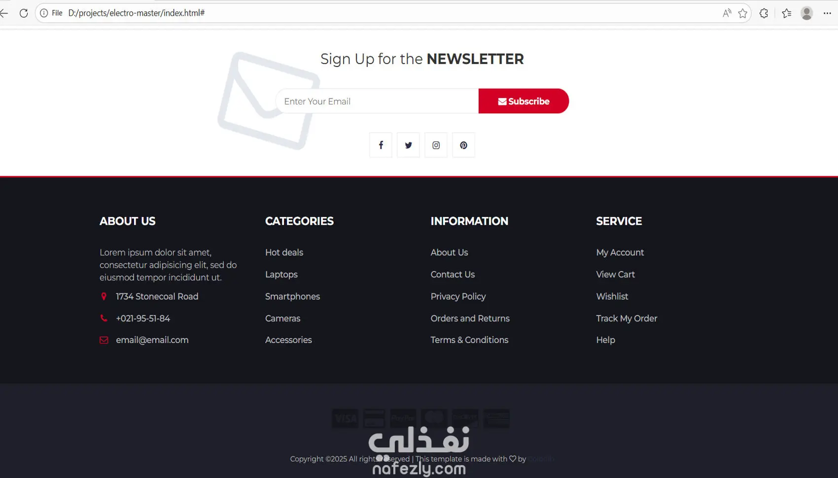 سأقوم بتصميم موقع ويب احترافي مكون من صفحة واحدة باستخدام HTML وCSS بتصميم متجاوب يعمل على جميع الأجهزة (كمبيوتر، موبايل، تابلت).