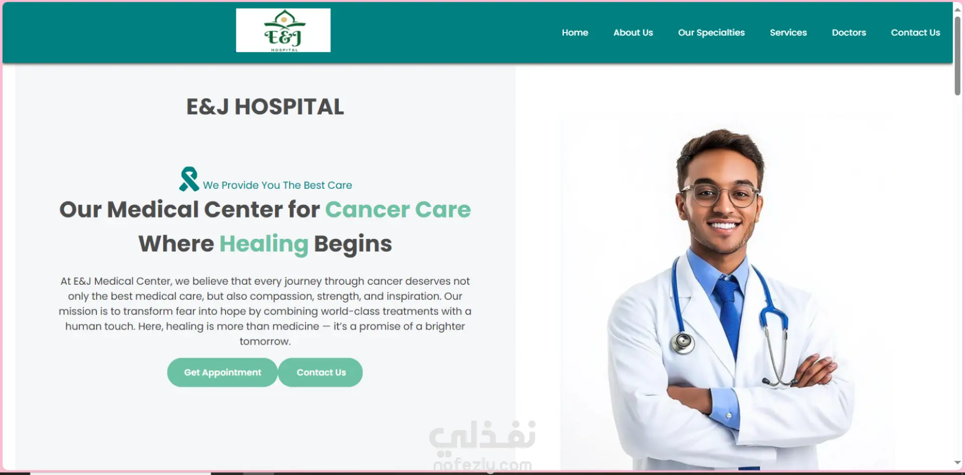 تصميم صفحة هبوط (Landing Page) احترافية لمركز علاج السرطان..باستخدام HTML, CSS, Java Script تصميم صفحة هبوط (Landing Page) احترافية لمركز علاج السرطان..باستخدام HTML, CSS, Java Script