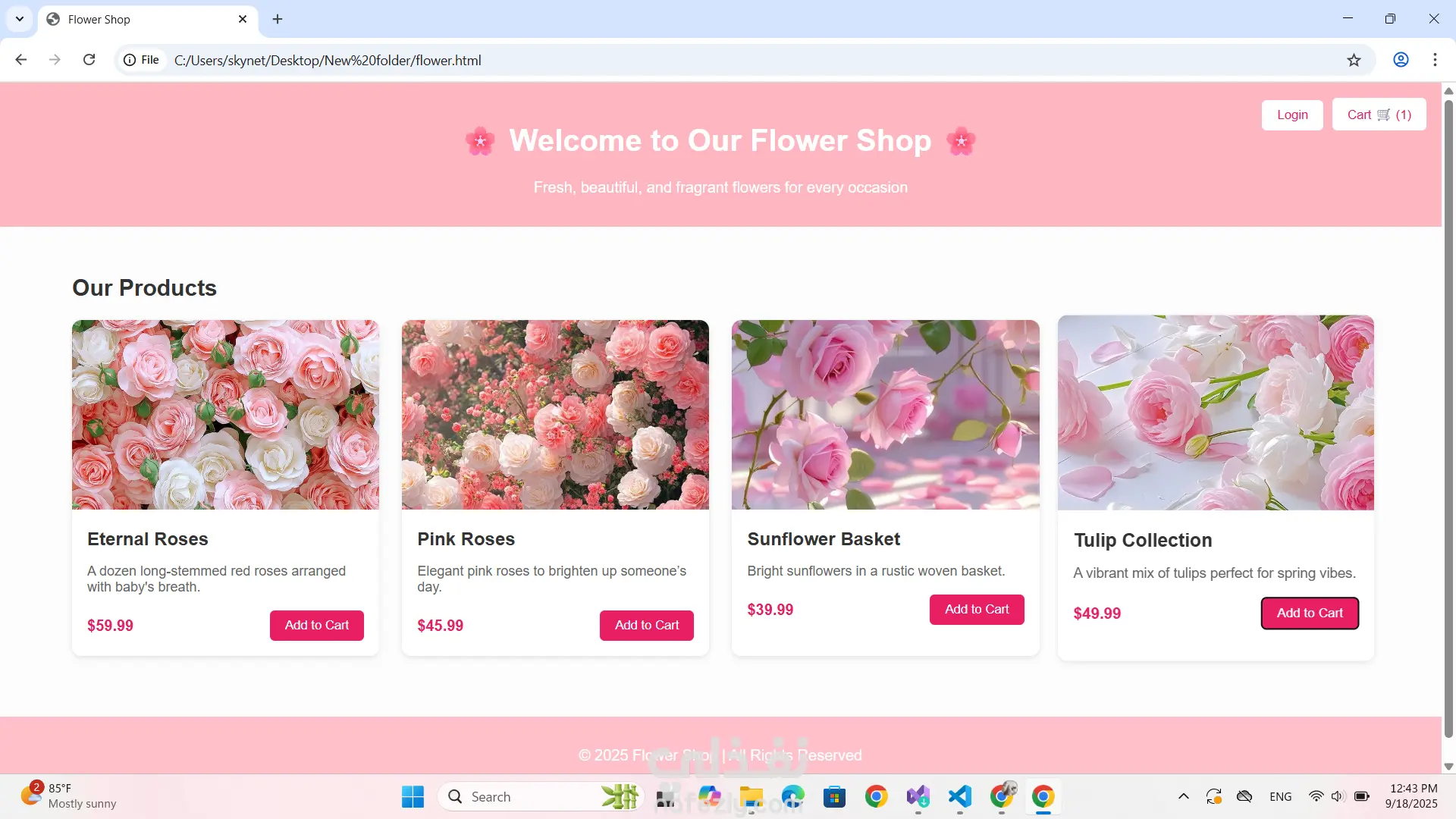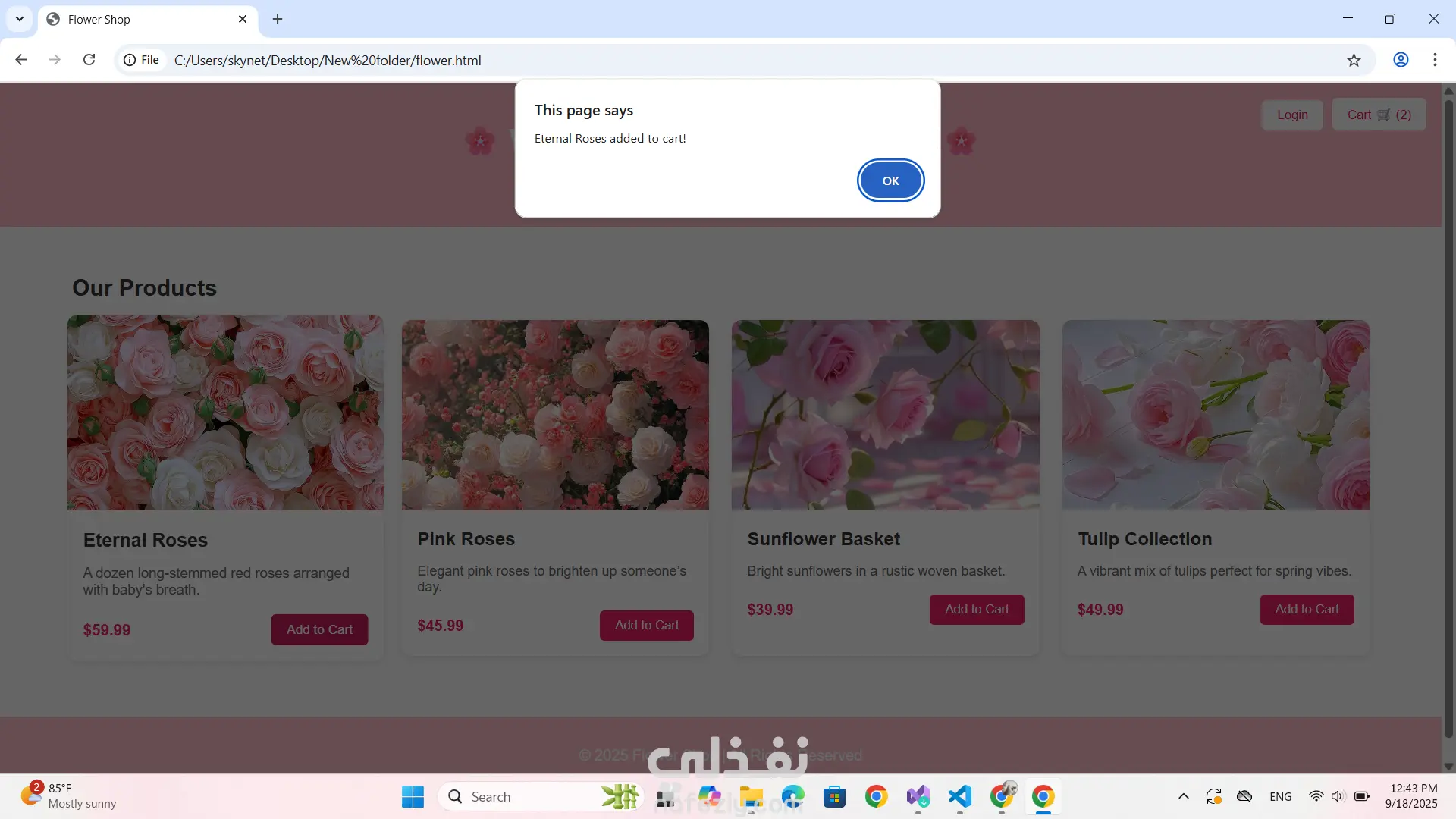 "تصميم موقع إلكتروني لمحل الزهور – متجر أنيق لعرض وبيع الزهور أونلاين"