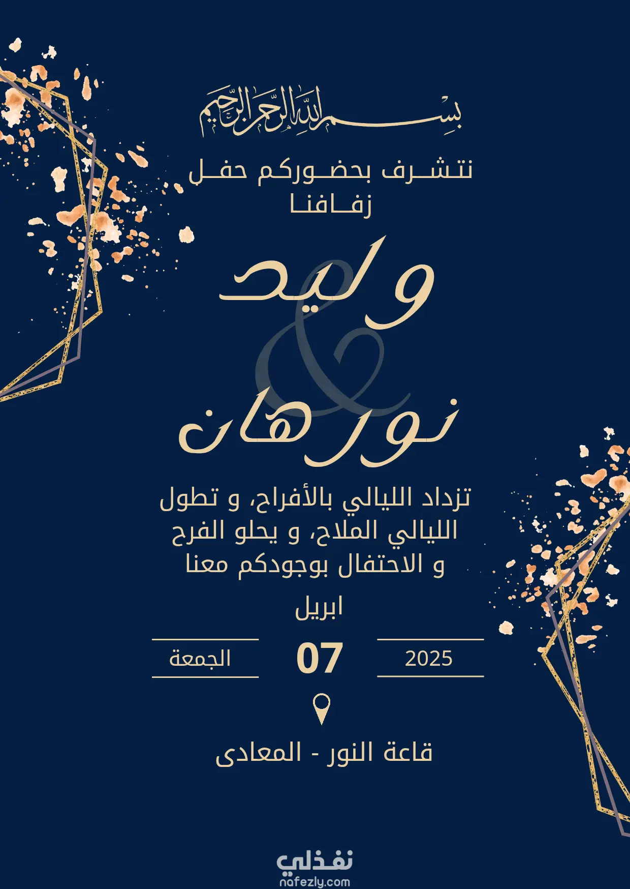اقدم تصميم دعوة فرح انيقة و مميزة تعكس ذوق العروسين وتضيف لمسة راقية ليومكم المميز