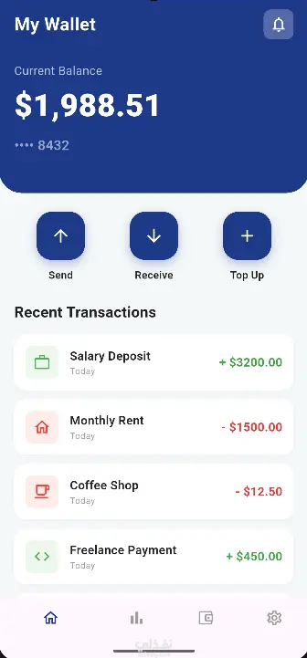 "Finance Wallet" هو رفيقك المالي الأنيق والفعّال. تم تصميم هذا التطبيق بأسلوب عصري ونظيف (Modern UI) يركز على الوضوح وسهولة الاستخدام. وداعاً للحسابات المعقدة؛ مرحباً بلمحة شاملة لأموالك من شاشة واحدة.