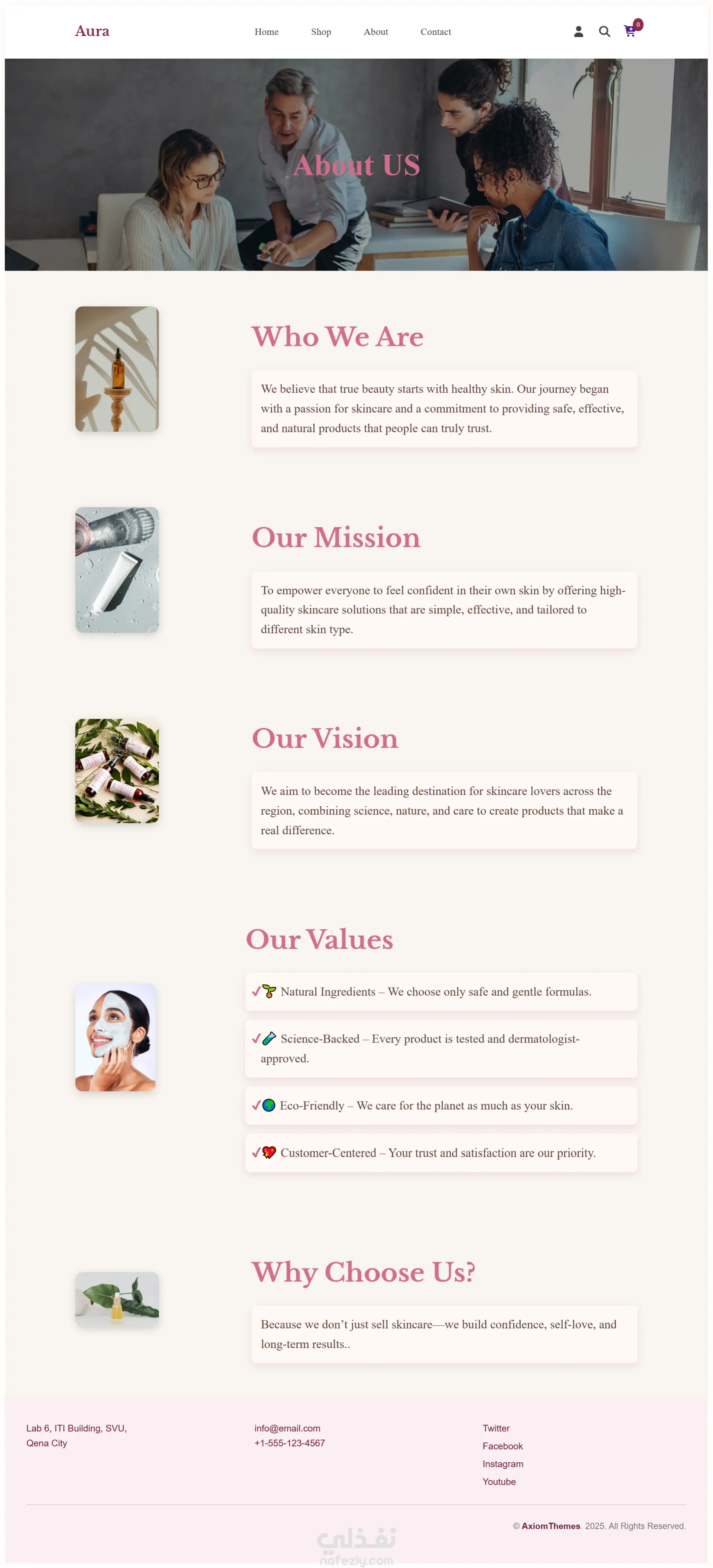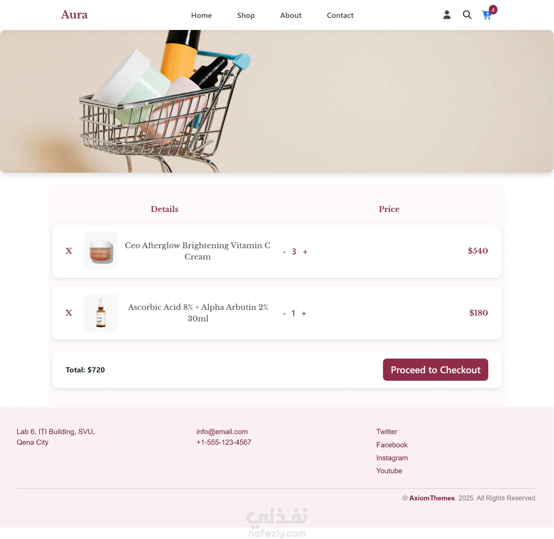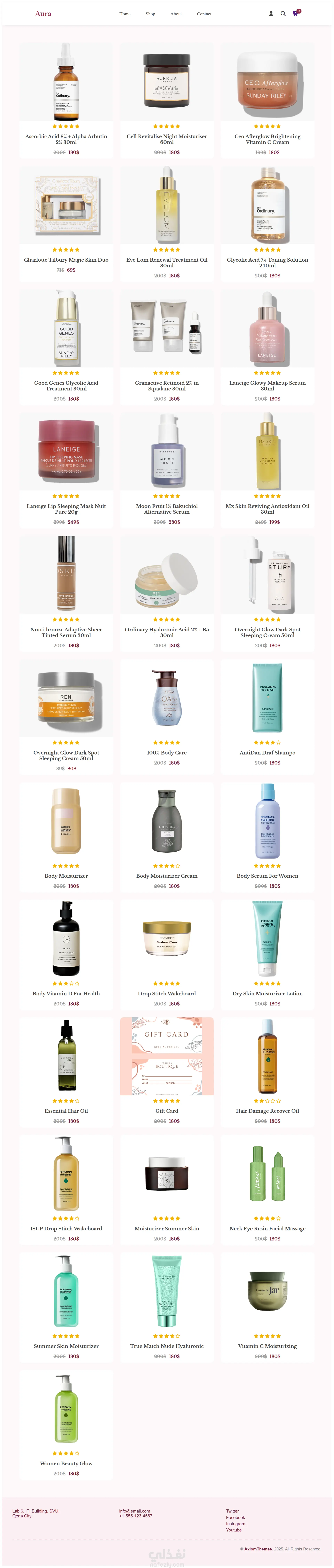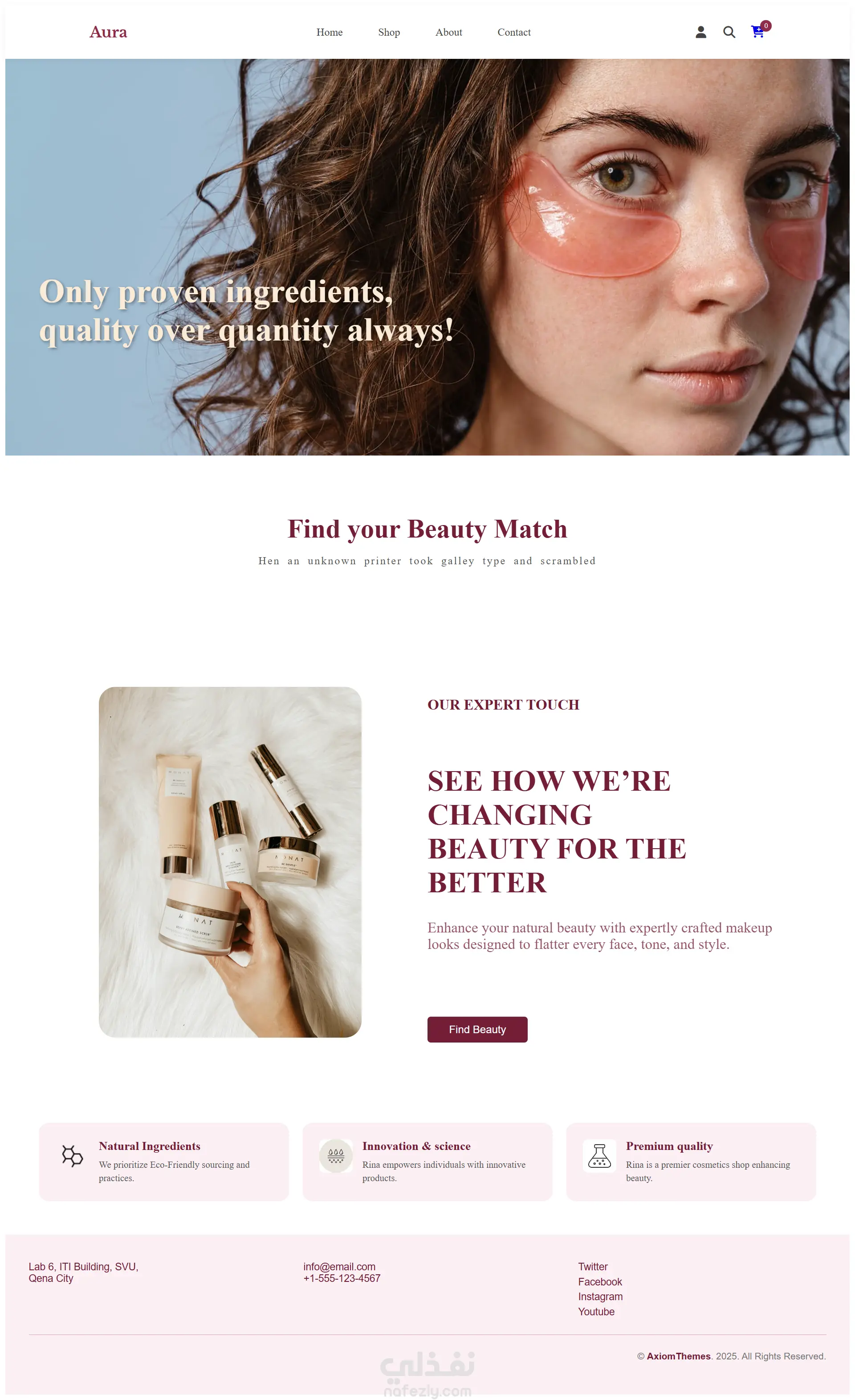 موقع لماركت إلكتروني للكوزماتيكس مصمم باستخدام HTML5, CSS3, JS, Bootstrap