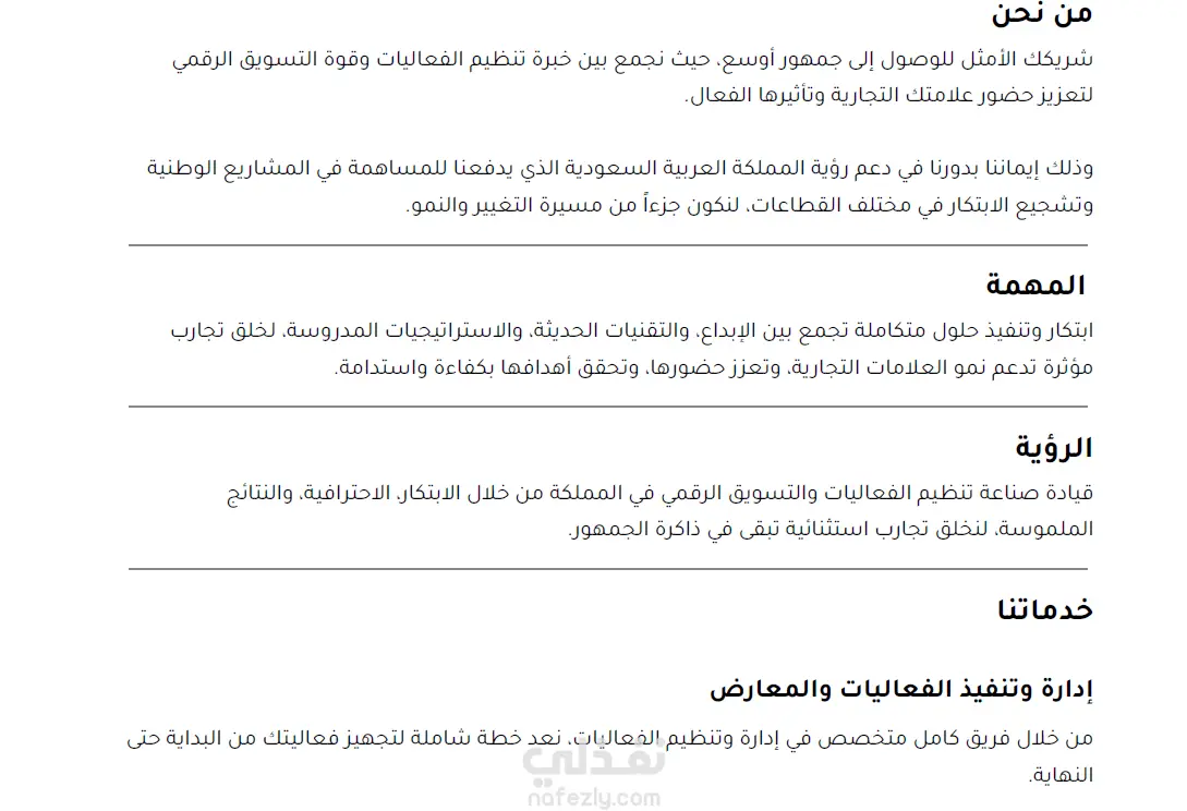 سأقوم بكتابة ملف تعريفي احترافي لشركتك بلغة عربية واضحة وبأسلوب تسويقي جذاب يتناسب مع هويتك التجارية. الملف مناسب لشركات التنظيم، التسويق، الفعاليات، المطاعم، المتاجر، المشاريع الناشئة وغير
