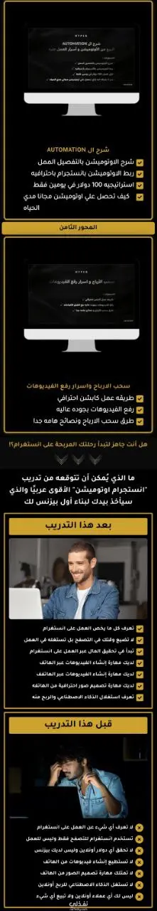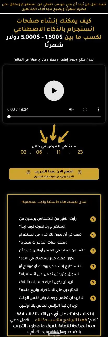 قمت بتصميم وتخصيص صفحة هبوط من نوع (Video Sales Letter) مبنية بالكامل على منصة systeme.io. تم تصميم الصفحة بهدف أساسي واحد إقناع الزائر بمشاهدة الفيديو التدريبي كاملا تصميم الوضع المظلم (Dark Mode) تم اعتماد ثيم (Theme) داكن (أسود/ذهبي) لإضفاء طابع احترافي ومميز (Premium Feel) يرفع من القيمة المدركة للتدريب