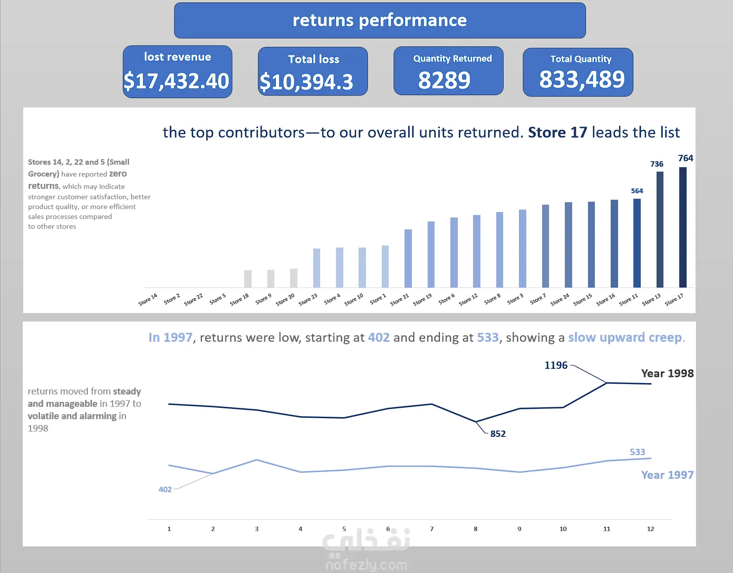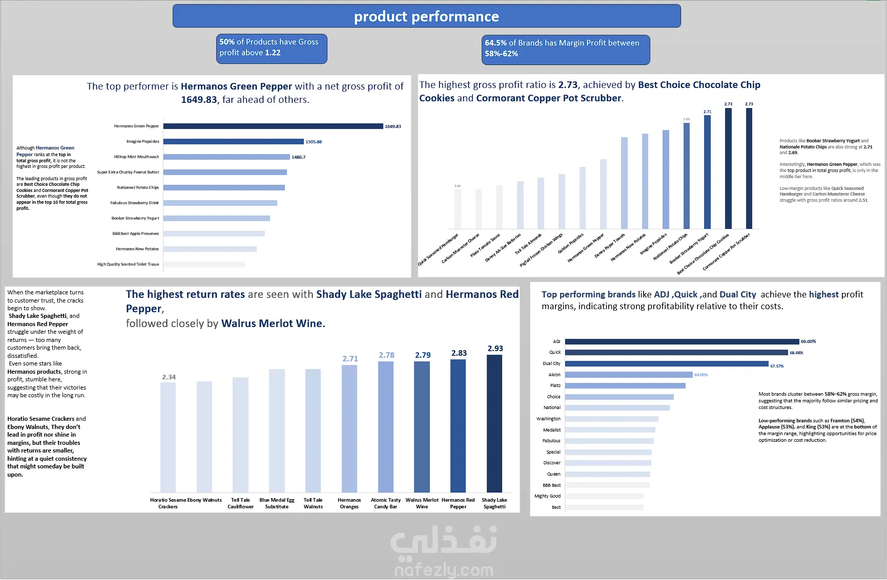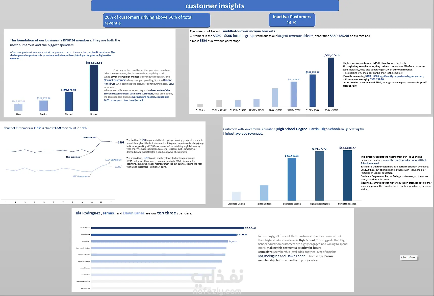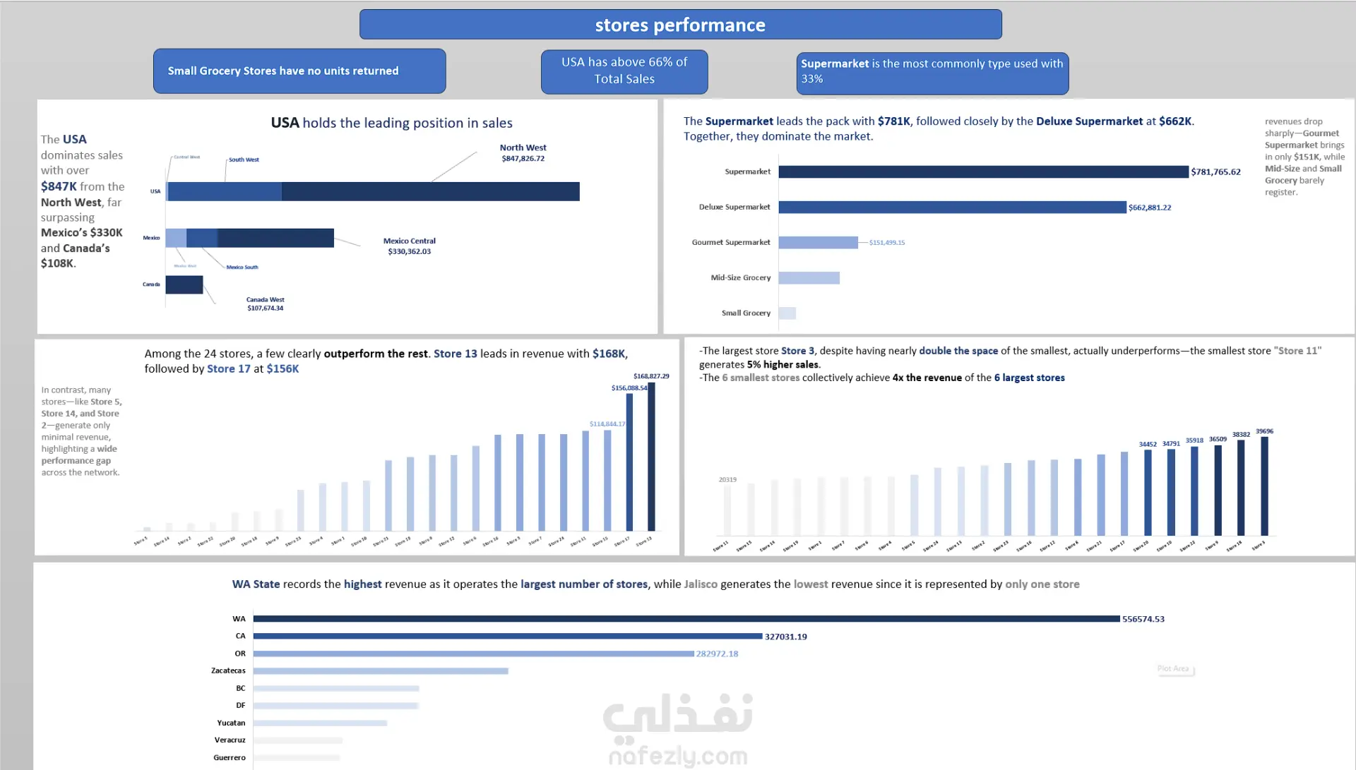 هذا المشروع هو أكثر من مجرد داش بورد؛ هو دراسة حالة كاملة لحل مشكلة واقعية. التحدي: كان المدير يواجه صعوبة في فهم سلوك المستهلكين وتحديد سبب انخفاض أرباح بعض المتاجر. ما قمت به: تحليل وتنظيف بيانات المبيعات الخام. بناء نموذج بيانات يربط بين المبيعات والمستهلكين. تصميم داش بورد تفاعلية تجيب على أسئلة محورية: ما هي المنتجات التي تسبب الخسارة؟ لماذا أداء متاجر المكسيك أقل ربحية من أمريكا؟ النتيجة: قدمت للمدير "رؤى قابلة للتنفيذ" (Actionable Insights) وتوصيات واضحة، مثل الاستفادة من المساحات العملاقة لبعض المتاجر في فتح انشطة مختلفة عن البقالة لجذب المستهلكين اكتر وزيادة الوقت الذي يقضونه في الشراء ، مما ساعده على اتخاذ قرارات مبنية على بيانات دقيقة.
