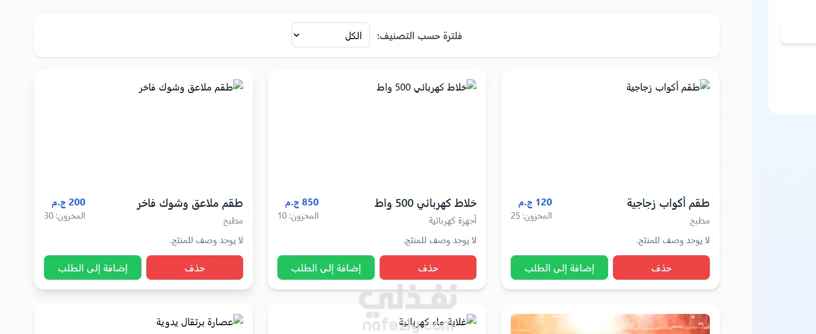 نظام إدارة منتجات وطلبات بسيط مبني بـ React و Tailwind CSS.