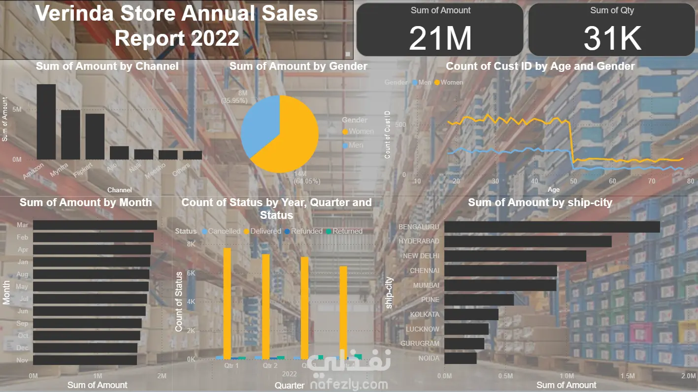 هذا المشروع عبارة عن تحليل شامل لبيانات المبيعات السنوية لمتجر "Vrinda" لعام 2022. تم استخدام Power BI لإنشاء لوحة معلومات تفاعلية (Dashboard) تهدف إلى استخلاص رؤى استراتيجية حول سلوك العملاء، وتحديد الأنماط الرئيسية للمبيعات، وتقديم توصيات قابلة للتنفيذ لزيادة المبيعات في عام 2023.
