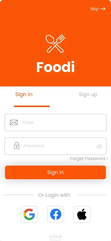_ تصميم أبلكيشن لمطعم Fodi _ يتكون الأبلكشين من 12 إسكرين يضم ال Nav bar وال Home وال sign in وال sign up وال logo والسعرات الحرارية ـ وتم التصميم بنظام Design system والprototayp