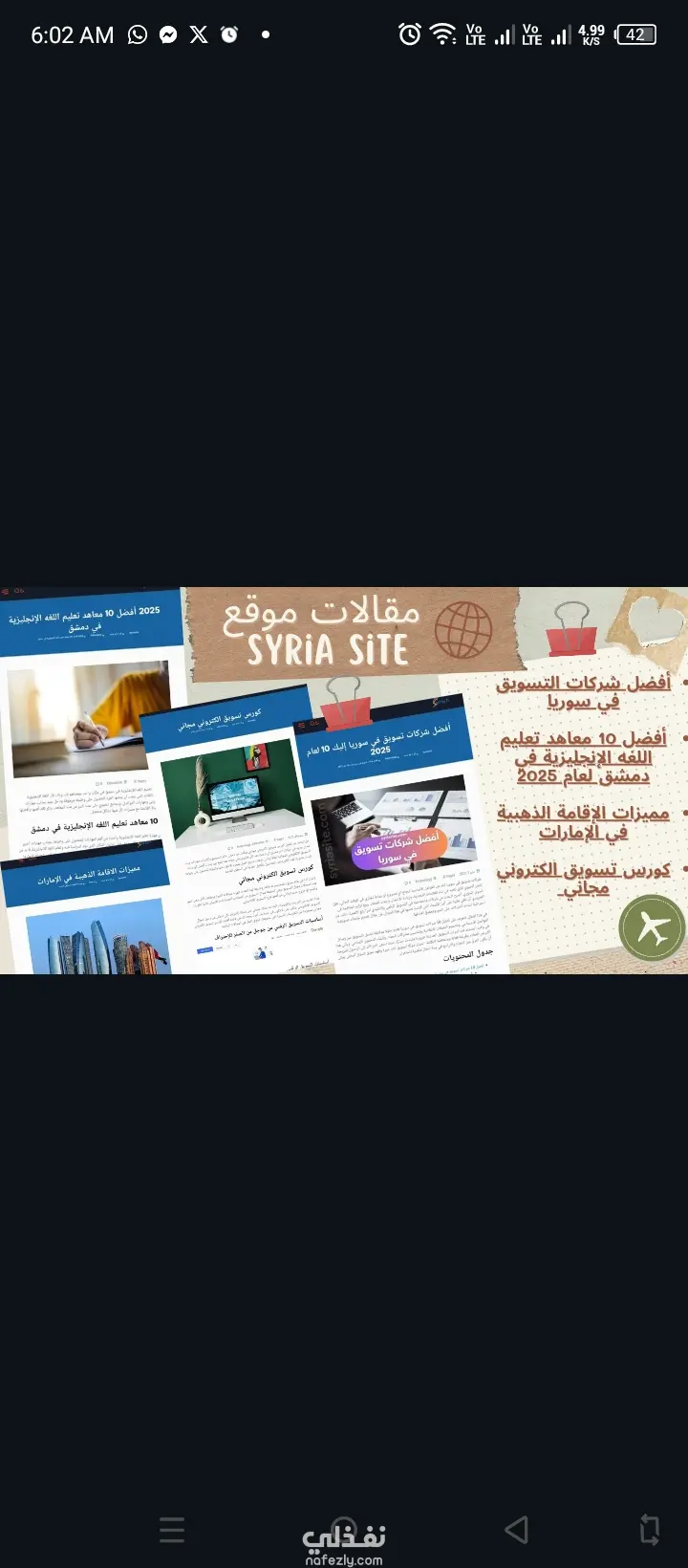 كتابة المقالات مع الالتزام بقواعد SEO، ورفعها على ووردبريس أو تسليمها Word أو Google docs. مرفق البورتفوليو الخاص بي مع لينكات مباشرة للمقالات المنشورة على مواقع مختلفة ومعروفة. سعر الخدمة ٦دولارات للمقال بدون رفع، و٨ دولارات بالرفع.