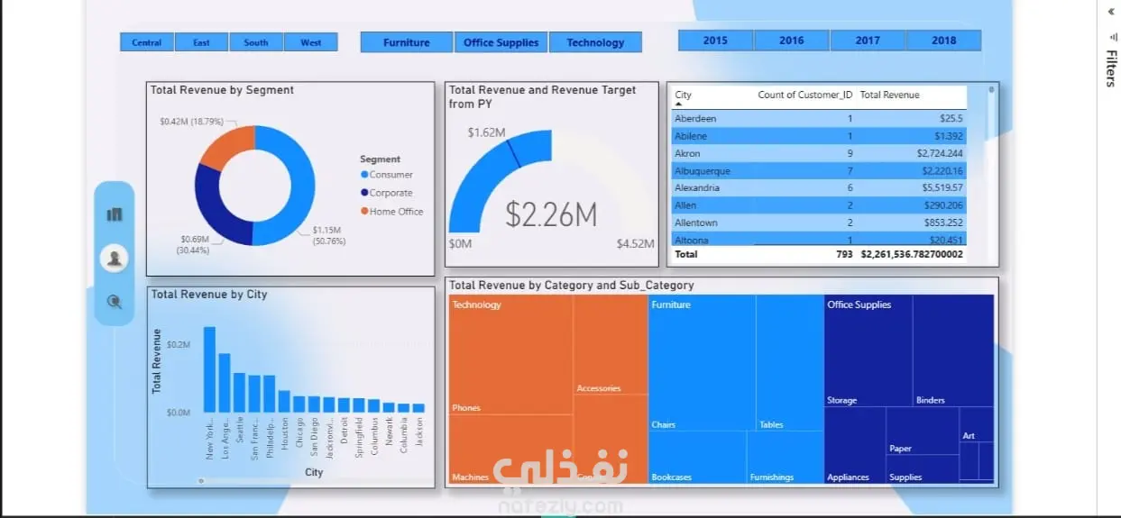 لوحة تحليل المبيعات والإيرادات التفاعلية (Power BI Dashboard)