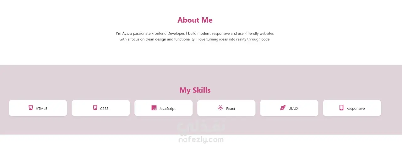 قسم "من أنا" (About): نبذة تعريفية عني بشكل أنيق وسهل القراءة.