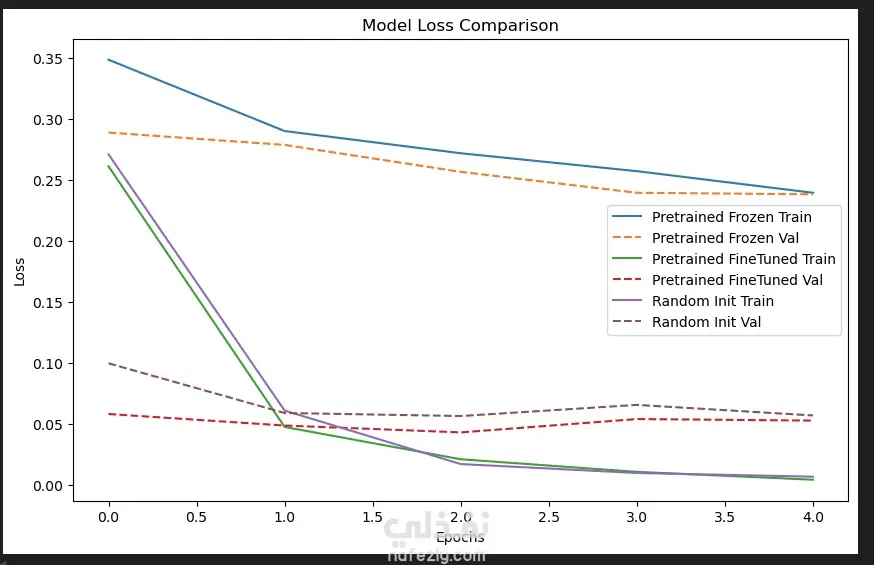 يبدأ من أوزان عشوائية للـ embeddings (بدون استخدام pretrained).