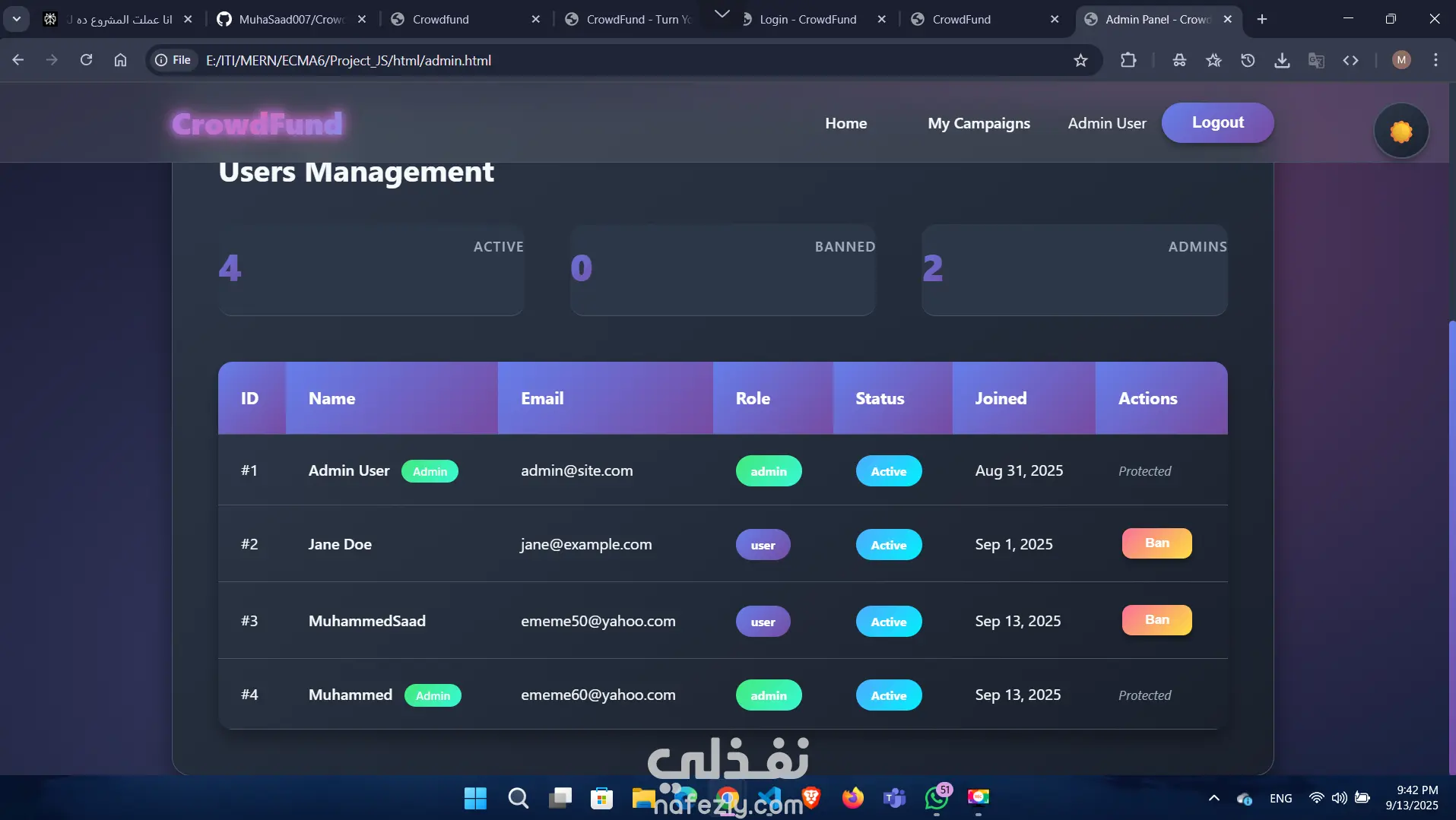 نظام تفاعلي لإدارة التبرعات والحملات.