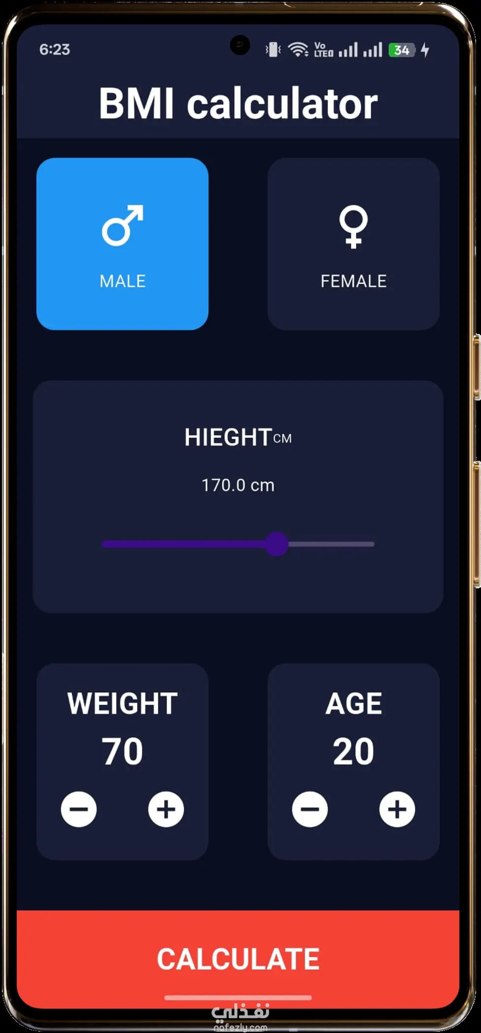 تطبيق BMI Calculator هو تطبيق بسيط وعملي تم تطويره باستخدام Flutter لحساب مؤشر كتلة الجسم (Body Mass Index) بدقة وسرعة. يساعد المستخدمين على معرفة حالتهم الصحية بناءً على الوزن والطول والعمر والجنس، مع تقديم توصيات وتحليلات مبسطة لنتيجة القياس.