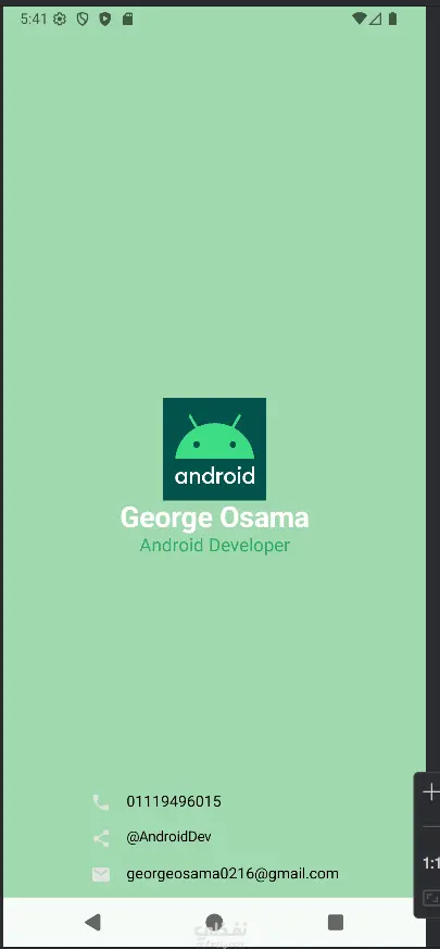 تطبيق يعرض تفاصيل التواصل مع المطور (يمكن اضافته كصفحة ثانوية في تطبيق ثاني في خانة contact مثلا)