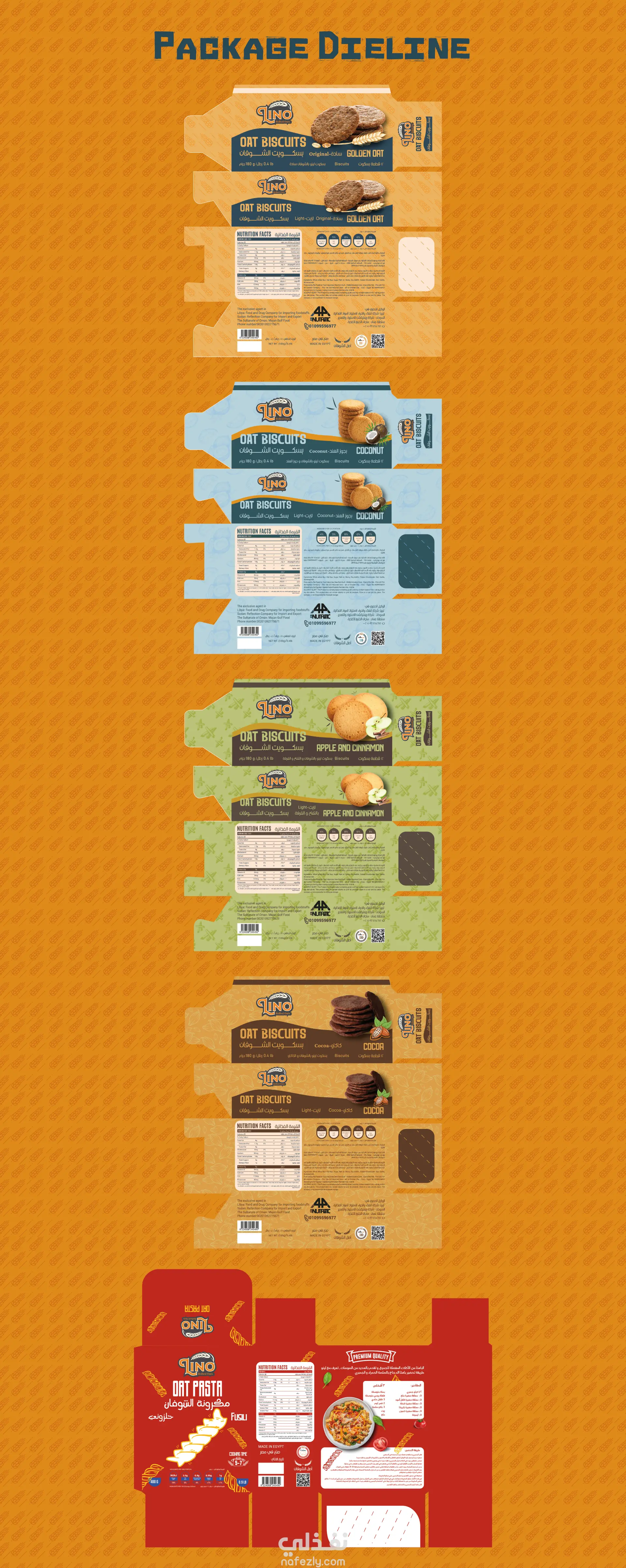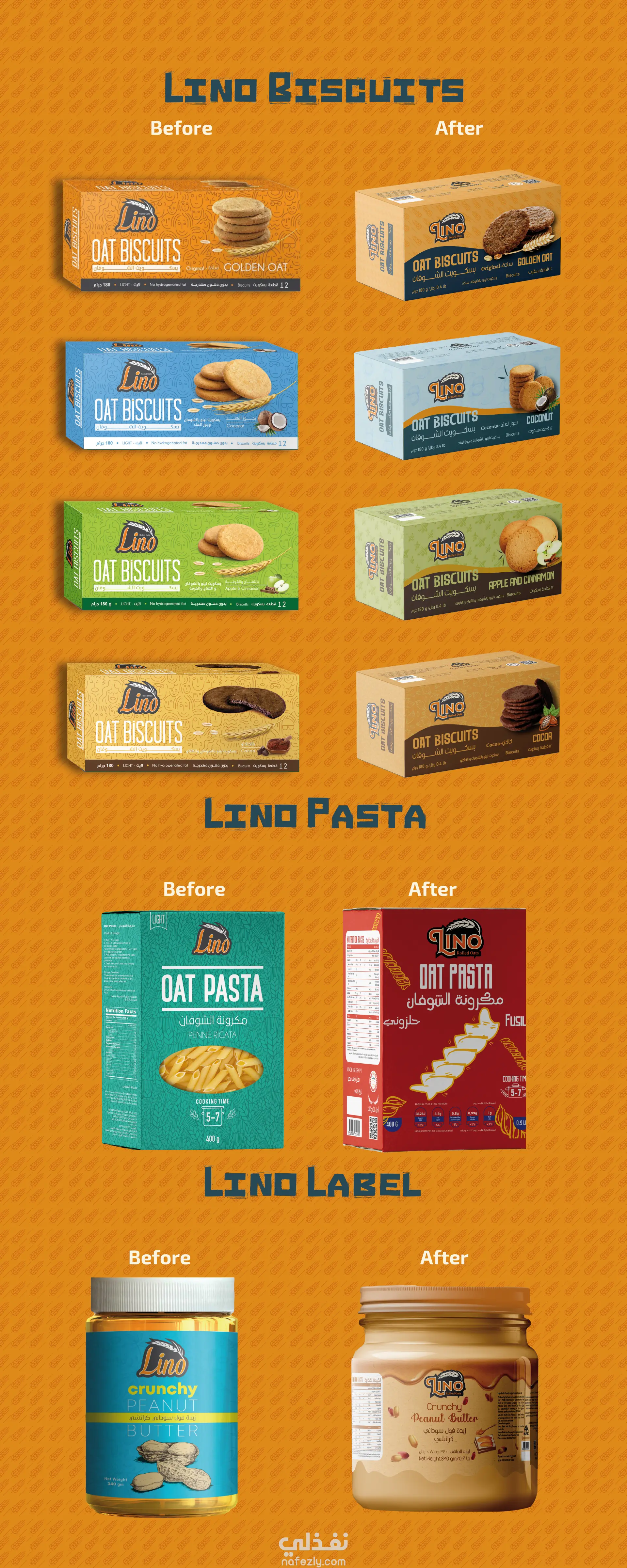 شركة لينو هي شركة غذائية مصرية تهتم بالأكل الصحي و من أشهر منتجاتها الشوفان و البسكويت لقد قمت بإعادة تصميم عبوات البسكويت, عبوة مكرونة و label لزبدة الفول السوداني الخاص بهم و قمت بإعادة تصميم اللوجو الخاص بهم بدون تغيير الألوان.