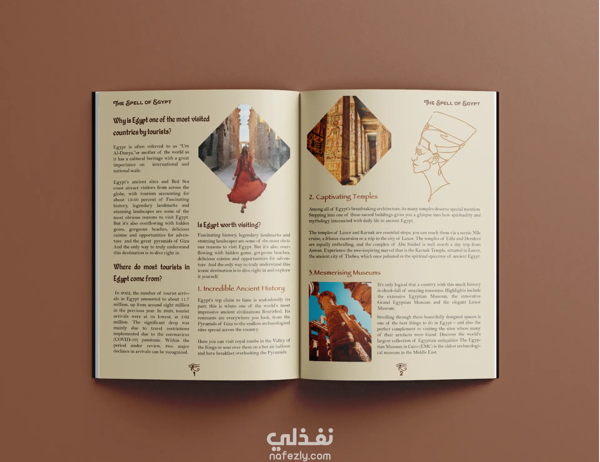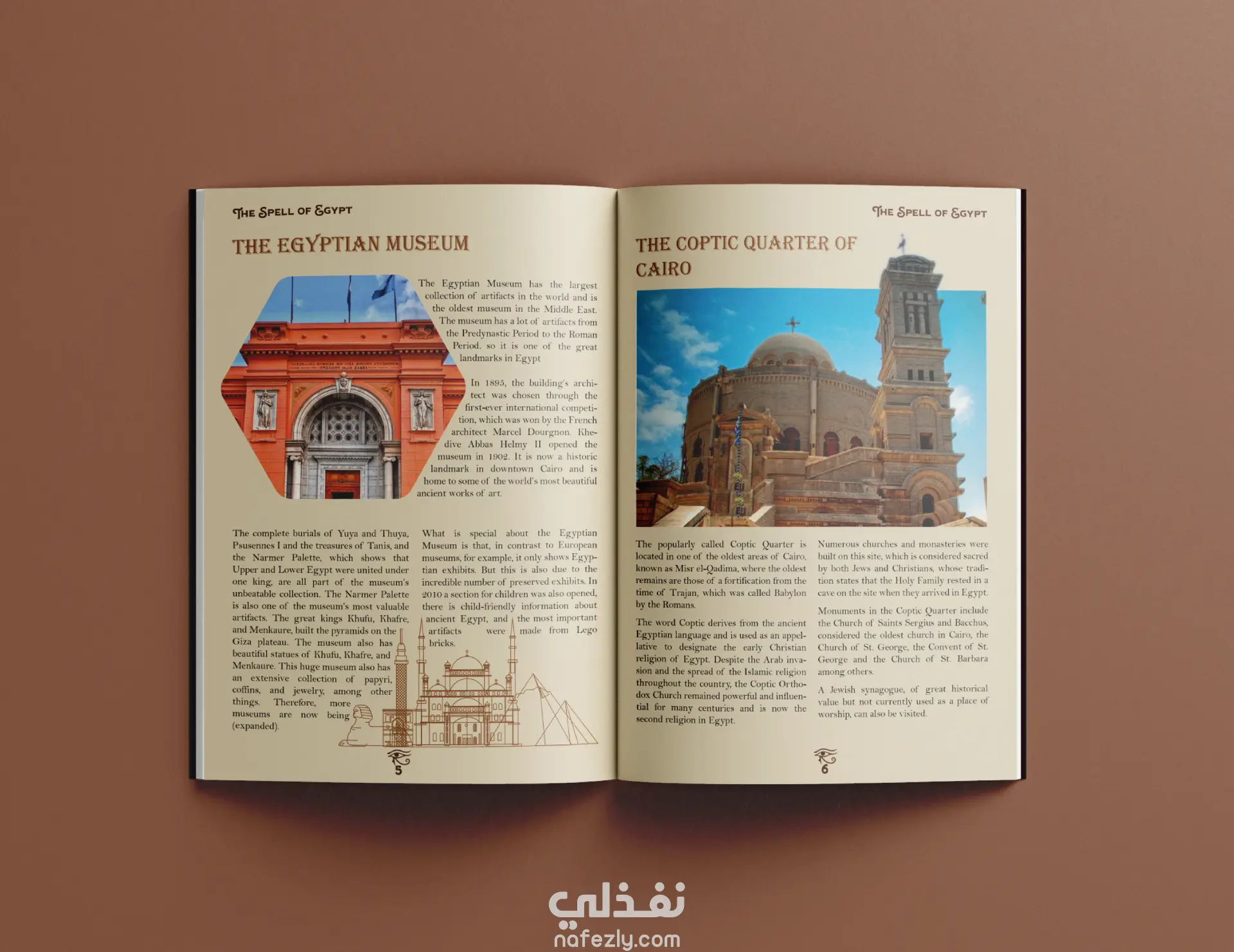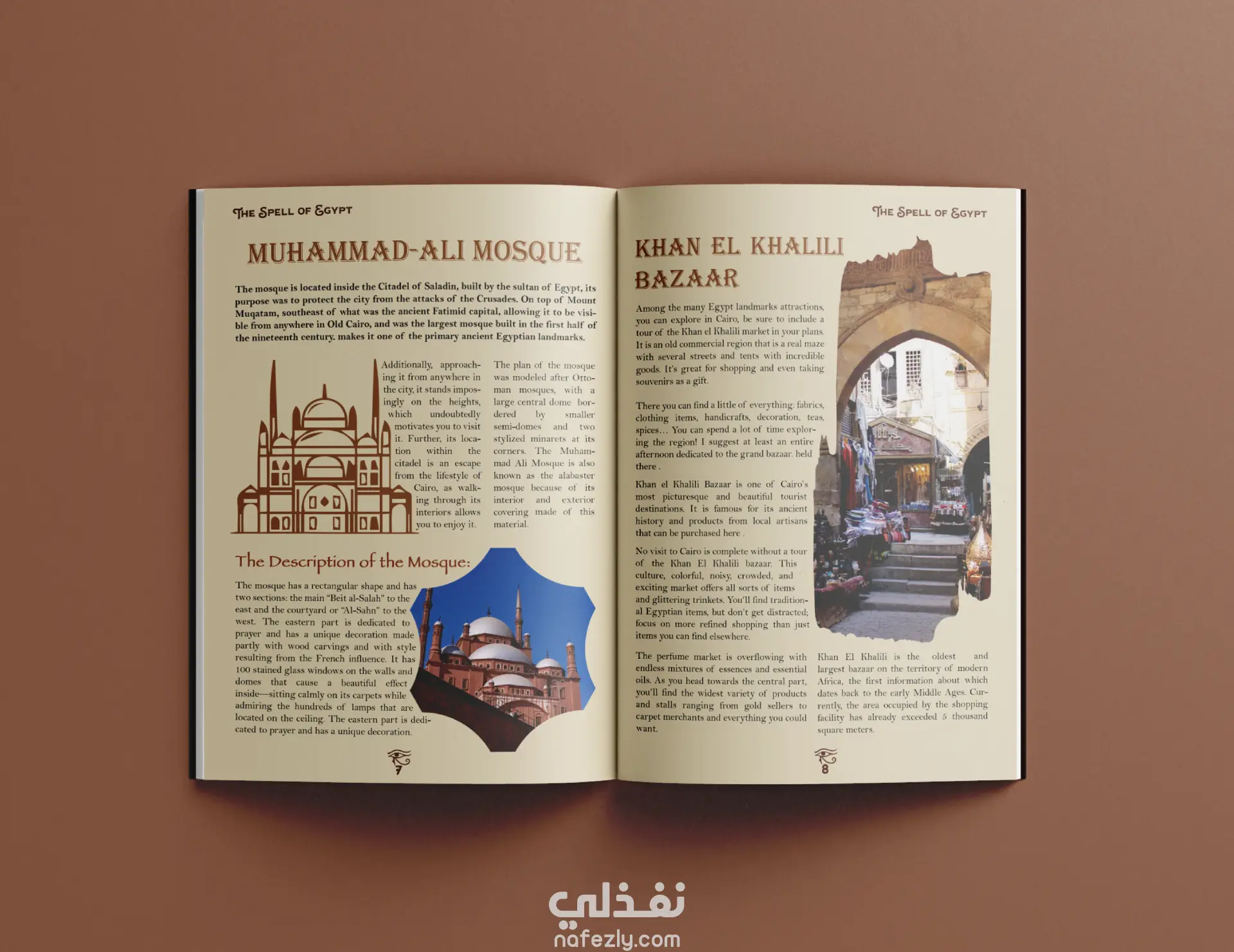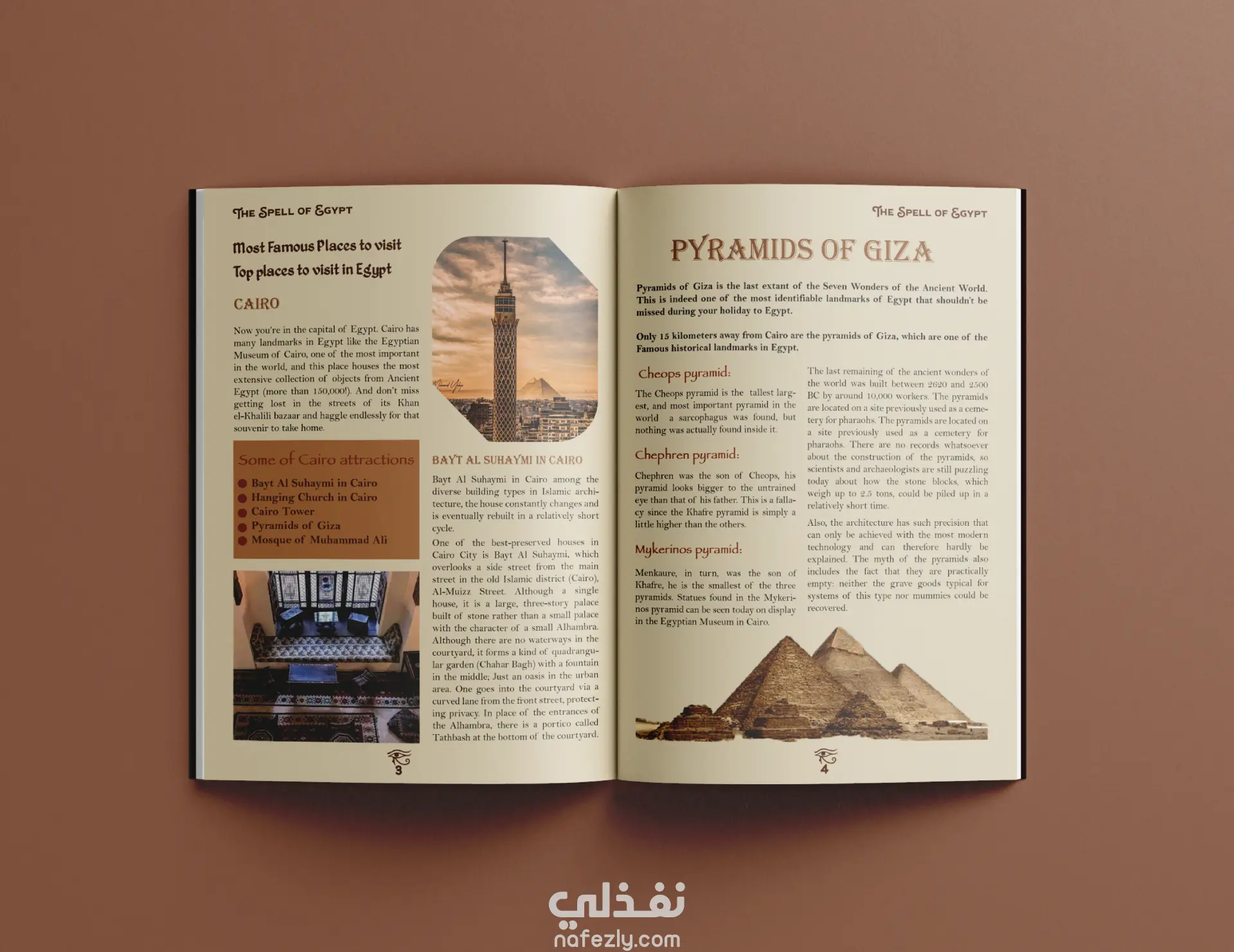قمت بتصميم غلاف كتاب+ 16 صفحة داخلية لكتاب يتحدث عن أشهر المزارات السياحية و معلومات عن هذه الأماكن للسياح الأجانب.