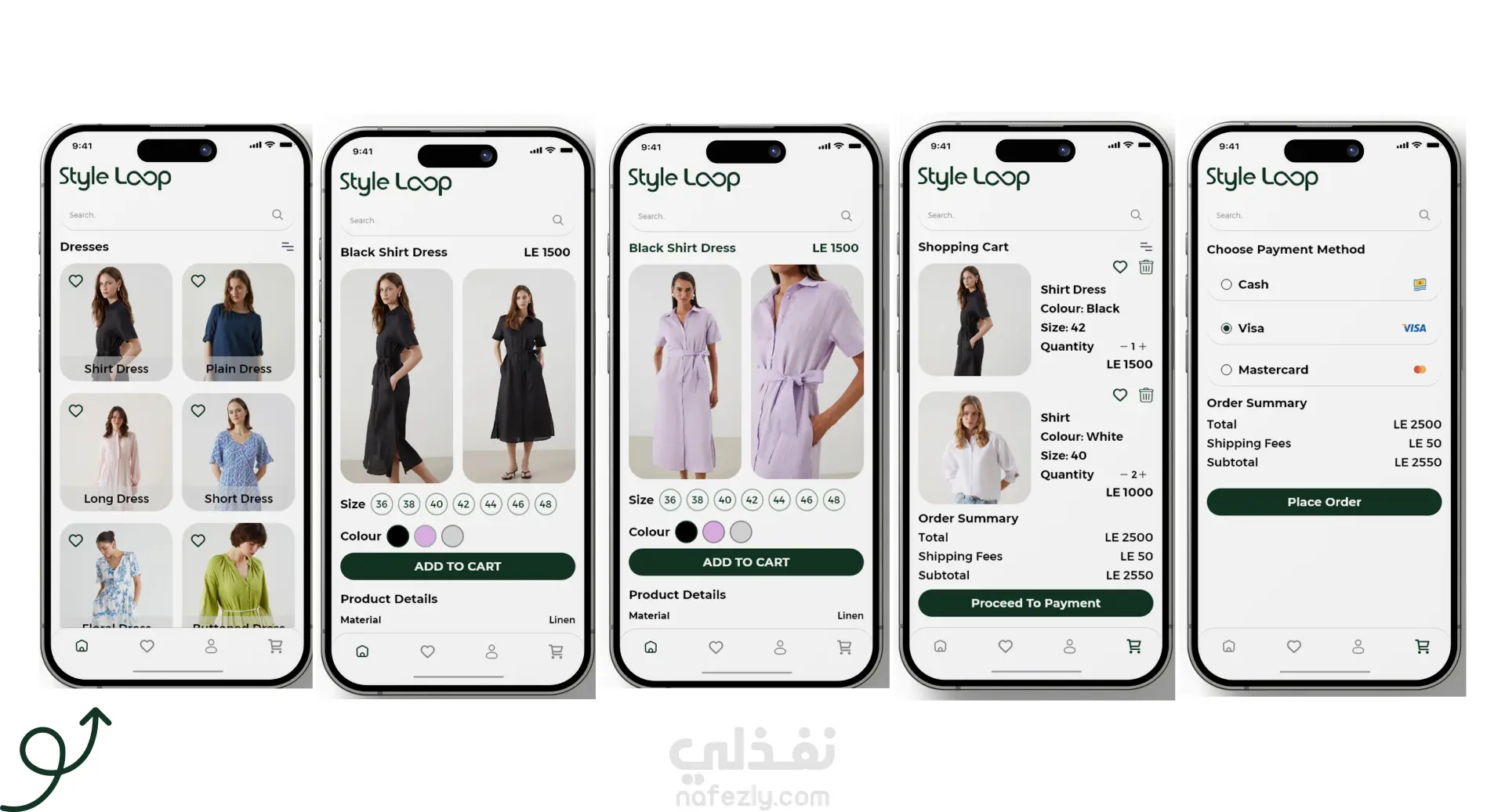 قمت بتصميم تطبيق لبيع الملابس بالإضافة إلى prototype الخاص بالتطبيق.