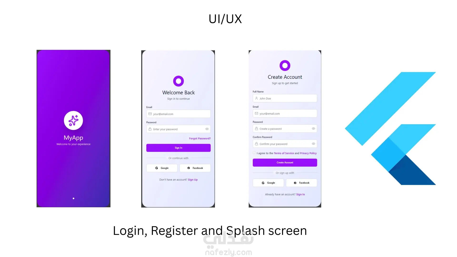 هذا المشروع يتضمن تصميم وتطوير الواجهات الأمامية (Frontend) لعملية مصادقة المستخدمين لتطبيق هاتف محمول تم بناؤه باستخدام إطار العمل Flutter.