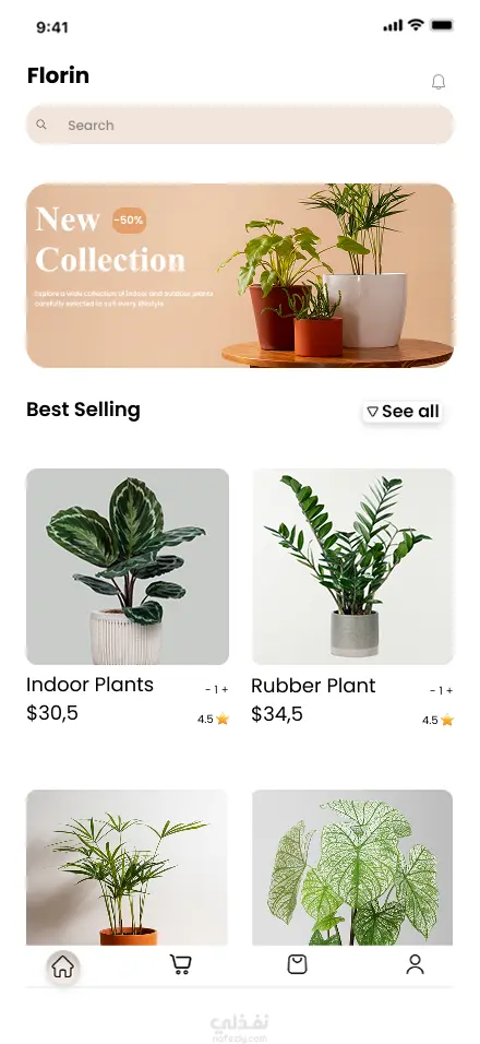"فلورين" هو تطبيق مخصص لعشاق النباتات والديكور الطبيعي، يهدف إلى جعل اقتناء النباتات أمرًا سهلًا وممتعًا لكل شخص. من خلال واجهة بسيطة وأنيقة، يمكن للمستخدم تصفح أنواع النباتات المختلفة — سواء كانت داخلية، مزهرة، أو صبّاريات — وشراءها مباشرة بضغطة واحدة. التطبيق صُمم ليجمع بين الجمال والبساطة، ويوفّر للمستخدمين تجربة تسوّق مريحة تساعدهم على جعل منازلهم أكثر خضرة وحيوية. 🌱
