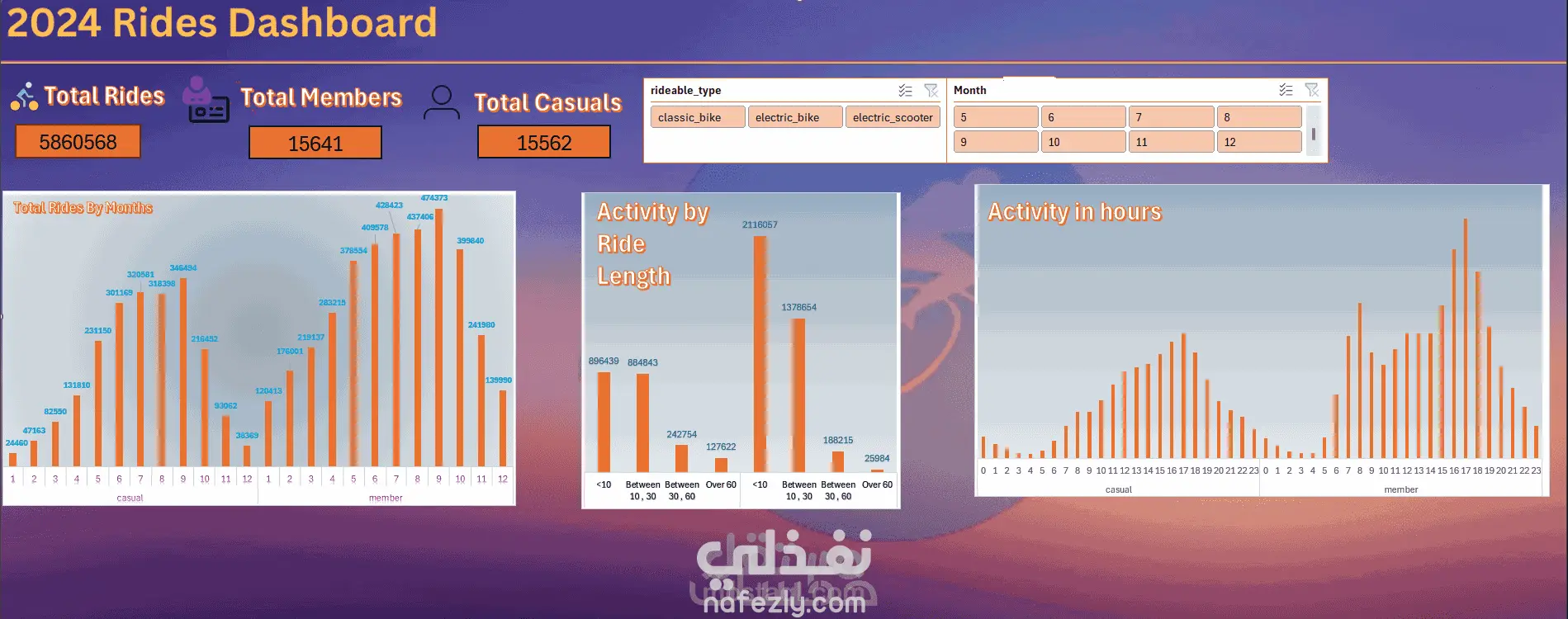 في هذا المشروع، قمت بتحليل بيانات شركة Divvy لتأجير الدراجات باستخدام أدوات تحليل البيانات وذكاء الأعمال. بدأت بتنظيف البيانات ومعالجتها ثم أجريت تحليلًا استكشافيًا للكشف عن الأنماط الموسمية وسلوك المستخدمين. استخدمت أكسيل لإنشاء لوحات تفاعلية تعرض أهم المؤشرات مثل عدد الرحلات حسب الوقت والموقع، ومتوسط مدة الاستخدام، والفئات الأكثر استخدامًا. كما قمت بتطبيق تقنيات التحليل الإحصائي لتحديد العوامل المؤثرة في مدة الرحلة، مما ساعد على تقديم توصيات لتحسين تجربة المستخدم وزيادة الكفاءة التشغيلية.