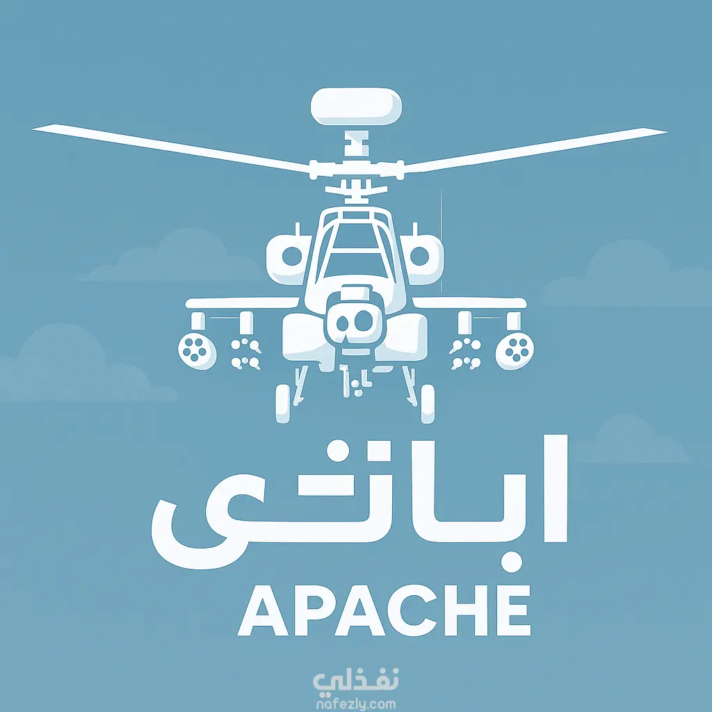 طلب المستخدم تصميم عصري وبسيط مع الوان فاتحة لطائرة الاباتشي مع اسم اباتشي في الصورة تحت الطائرة
