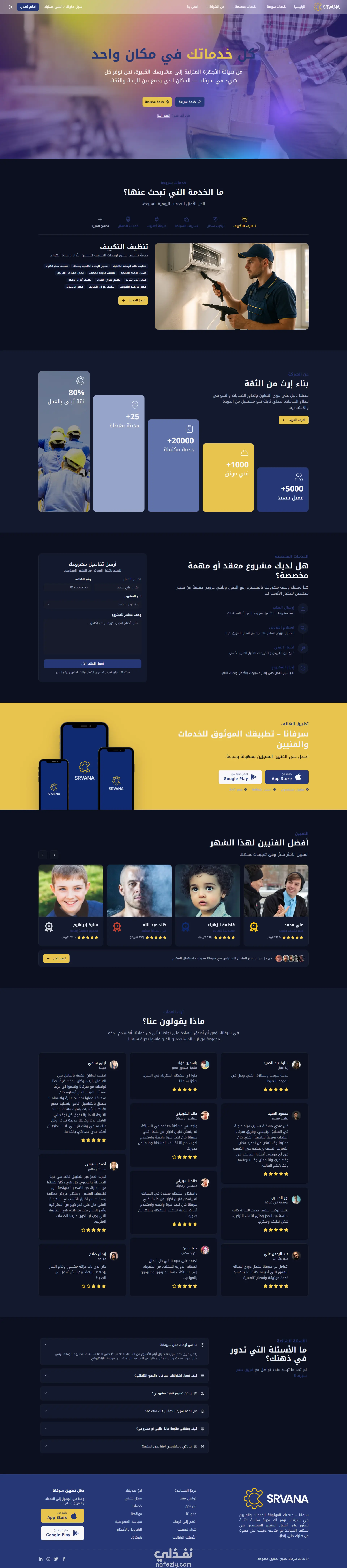 تطوير منصة SRVANA – موقع ويب وتطبيق هاتف متكامل لخدمات الصيانة المنزلية والمشاريع. (React - Django - React Native)