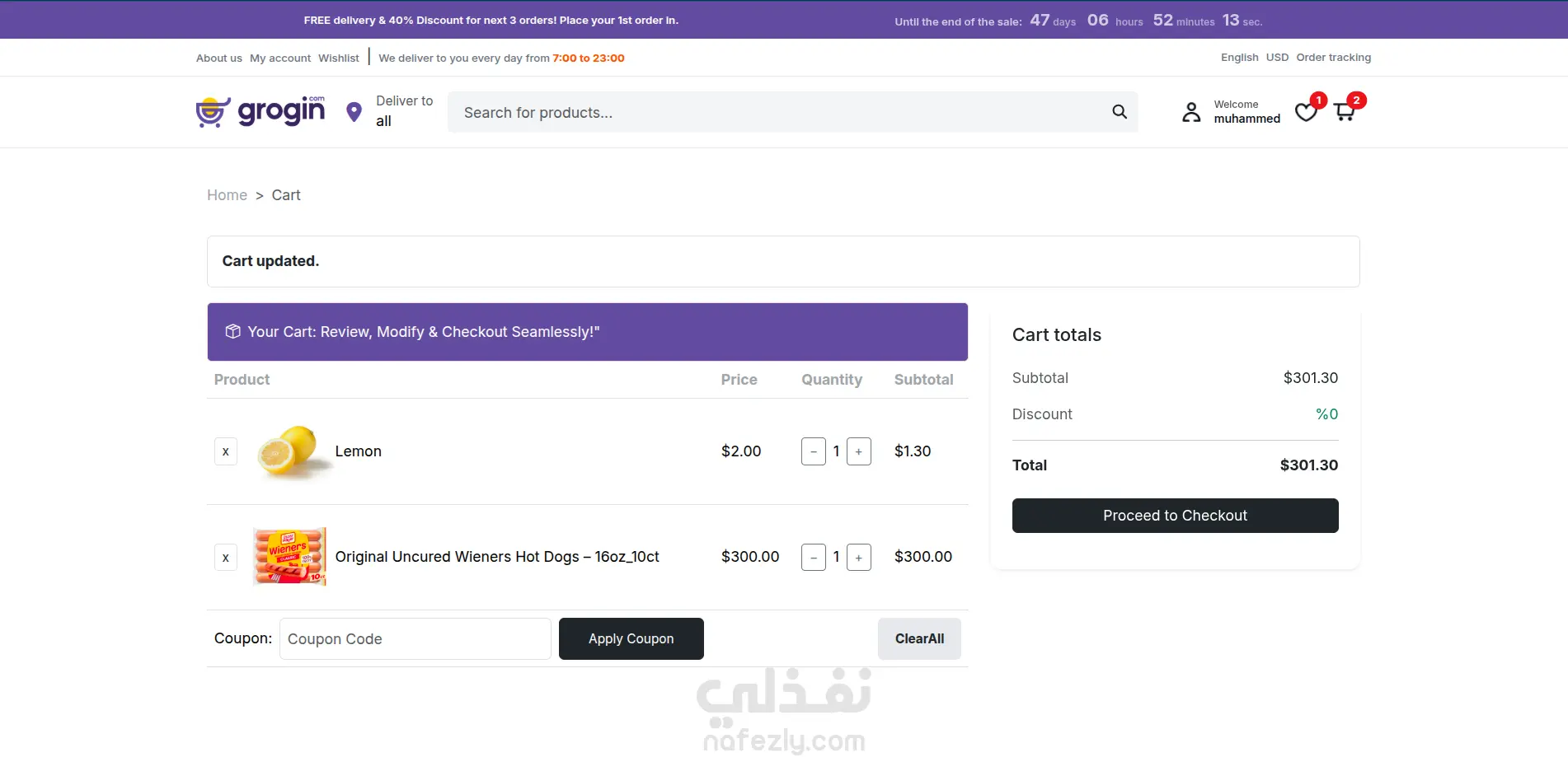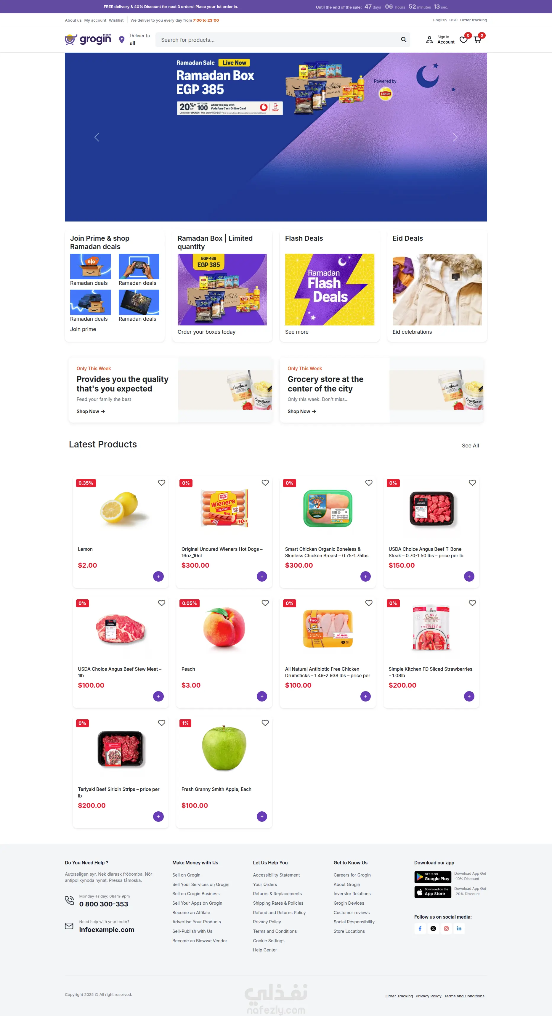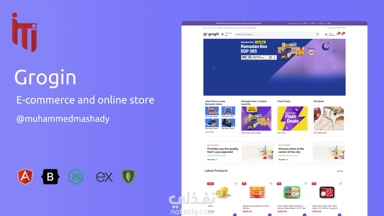 Grogin - MEAN Stack E-Commerce Project A full-featured e-commerce platform built with Angular and Node.js, integrated with Stripe for payments. Users can browse products, add them to the cart, and pay online. Includes an admin dashboard for managing orders and inventory. Grogin - مشروع متجر إلكتروني باستخدام MEAN Stack منصة تجارة إلكترونية متكاملة تم تطويرها باستخدام Angular وNode.js، مع دمج Stripe لعمليات الدفع الإلكتروني. يمكن للمستخدمين تصفح المنتجات، إضافتها إلى عربة التسوق، والدفع عبر الإنترنت. يشمل المشروع لوحة تحكم للإدارة تتيح متابعة الطلبات وإدارة المخزون.