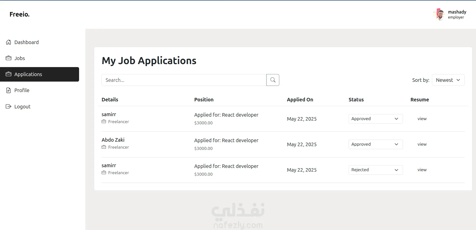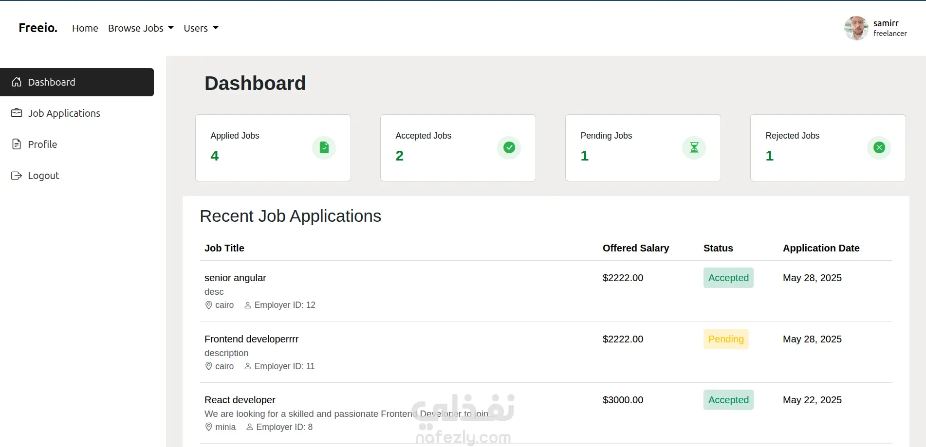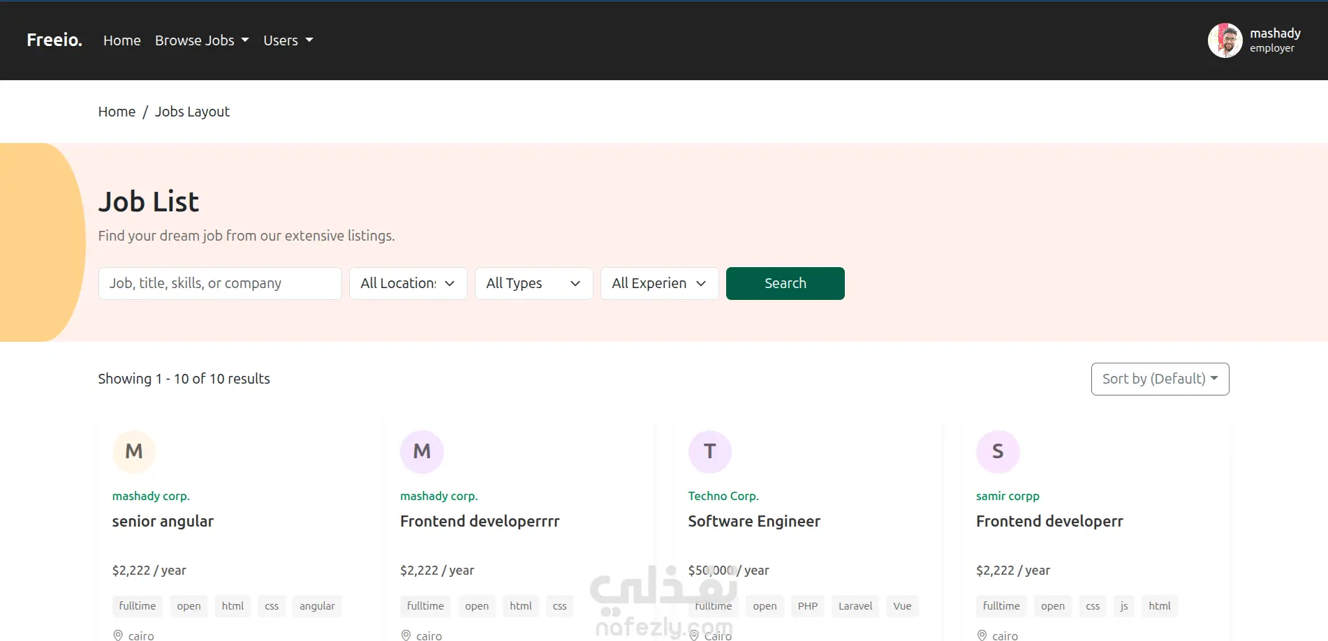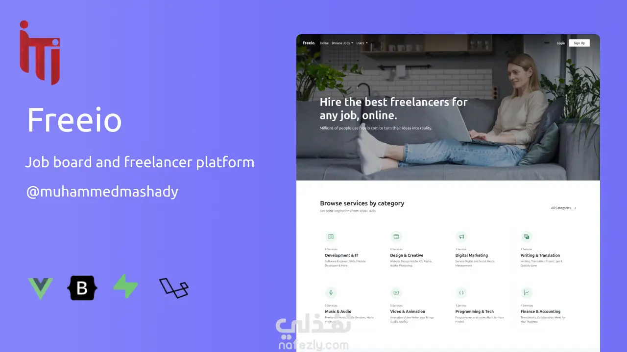 Freeio - job board and freelance platform project - full stack laravel and vuejs. A platform connecting freelancers with clients. Users can register as either freelancers or employers, post jobs or projects, and apply. Includes dashboards tailored for each user role. Freeio - مشروع منصة وظائف والعمل الحر (Laravel & Vue.js) منصة متكاملة تربط بين المستقلين والعملاء. يمكن للمستخدمين التسجيل كمستقلين أو كأصحاب عمل، ونشر وظائف أو مشاريع، والتقديم عليها. تتضمن المنصة لوحات تحكم مخصصة لكل نوع من المستخدمين بحسب دوره.